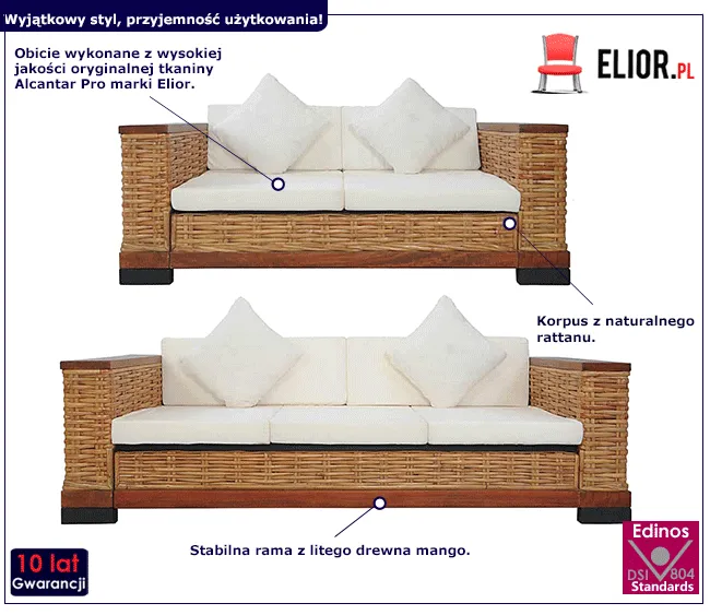 Dotyczy: 3-częsciowy 6-osobowy zestaw wypoczynkowy z naturalnego rattanu - Bublo 6A