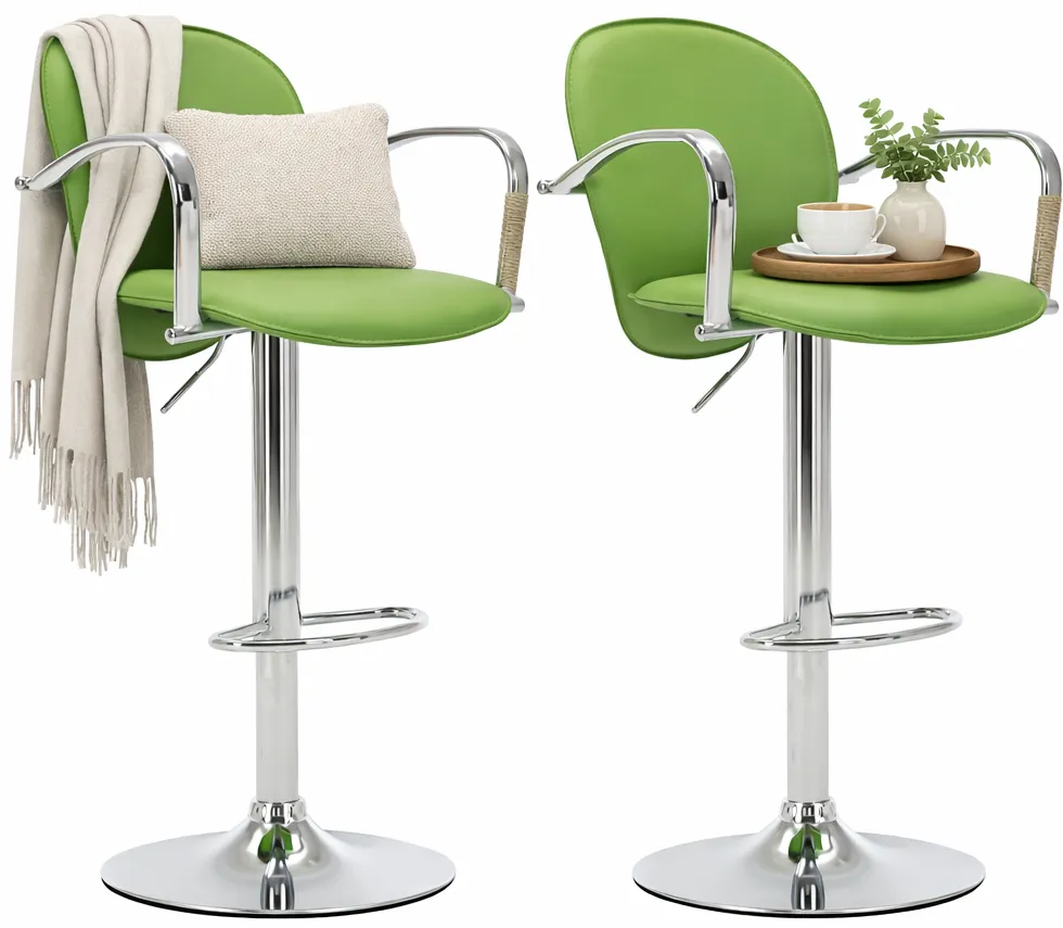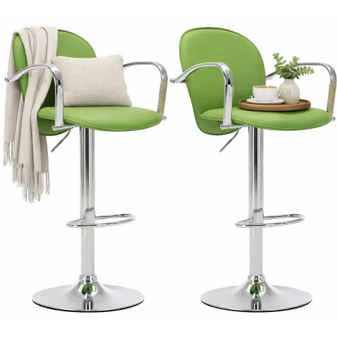 Zestaw hokerów wygląda bardzo stylowo - zielony kolor i tapicerka z podłokietnikami naprawdę robią robotę przy kuchennej wyspie. Oba są wygodne, a obrotowa funkcja super ułatwia zmianę pozycji. Całość prezentuje się jak za tę cenę bardzo dobrze.
