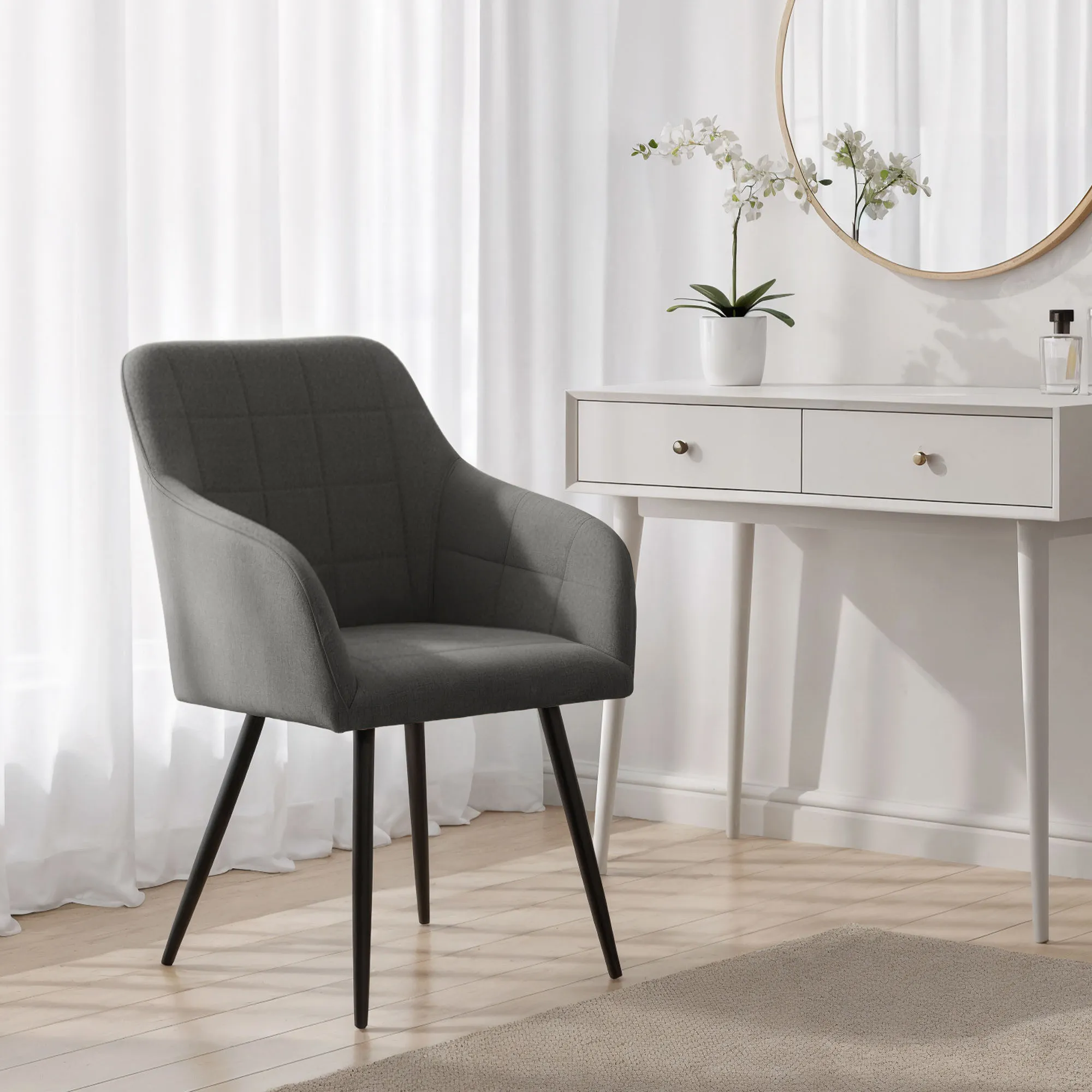 Krzesła tapicerowane łączą estetyczny wygląd z komfortem użytkowania i dobrze wpisują się w różne style wnętrz. Ich uniwersalna forma sprawia, że są odpowiednie do jadalni, salonu lub przestrzeni biurowej. Dostępne są w dwóch wariantach materiałowych – w tkaninie Lumos lub w welurze.