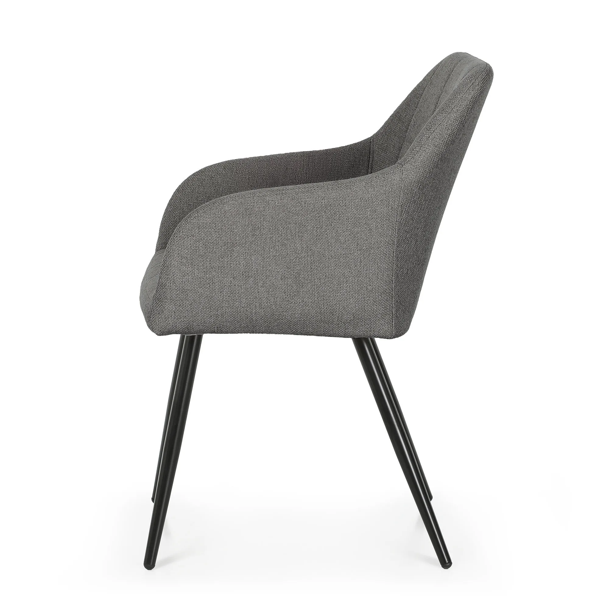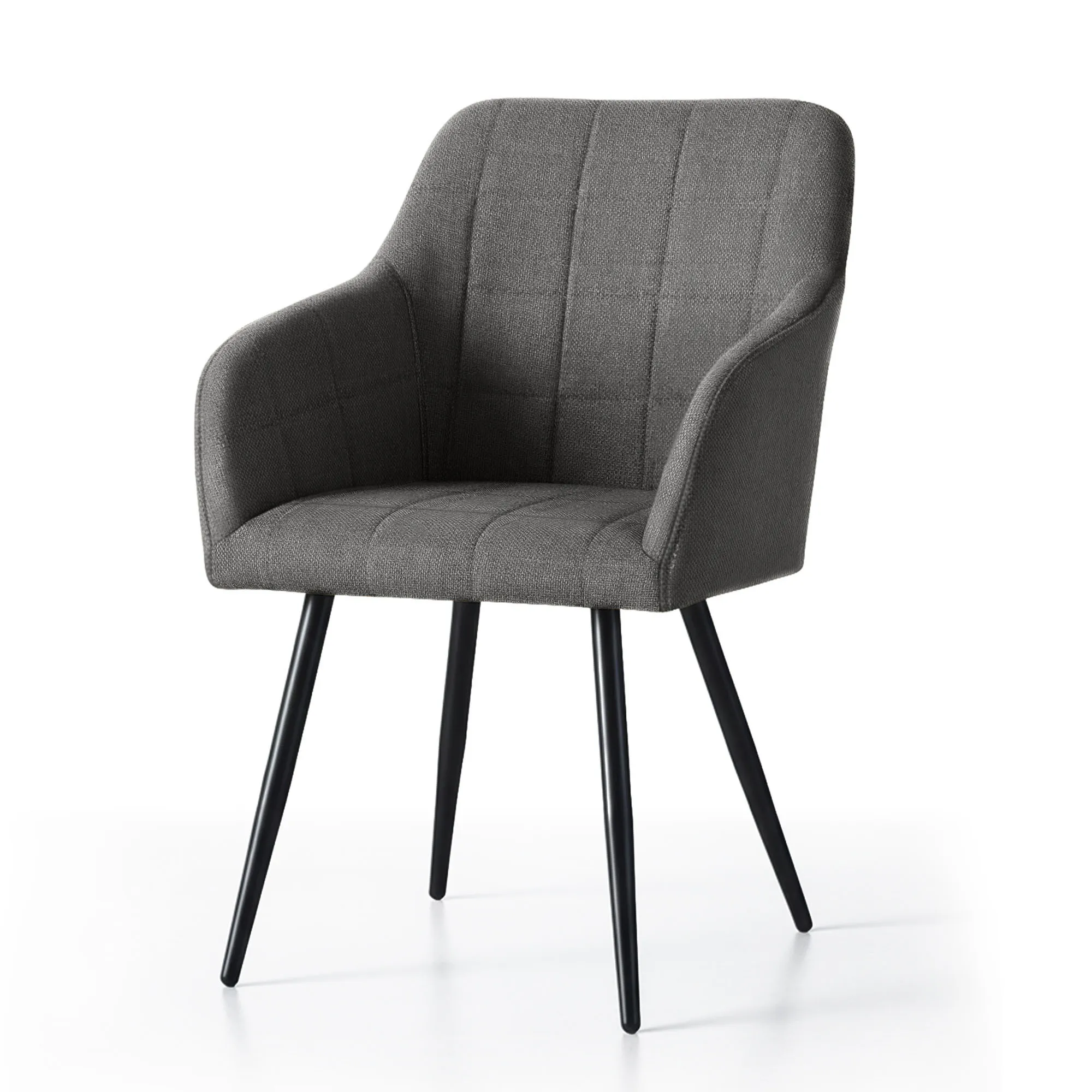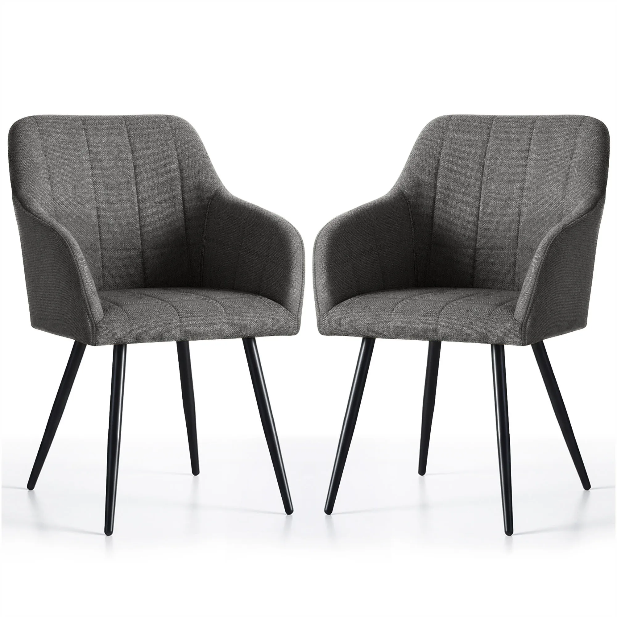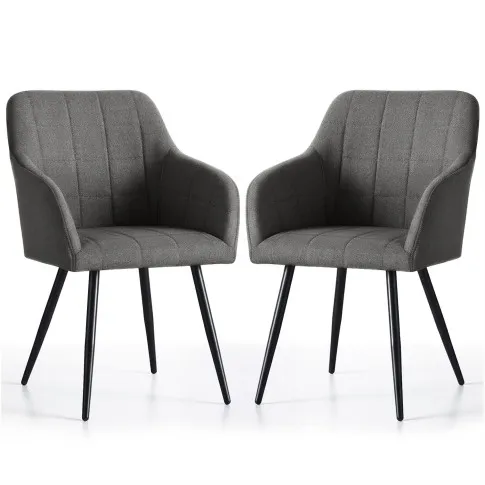 2x Krzesło tapicerowane z przeszyciami kwadratowymi Ciemny Grafit LUXANO Czarne nogi tkanina Lumos