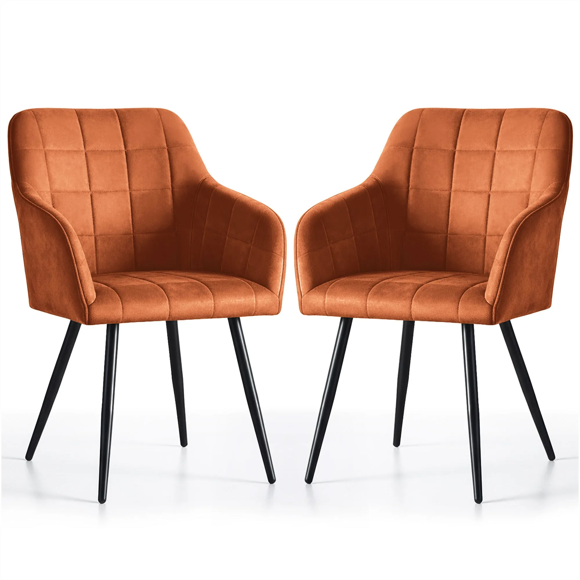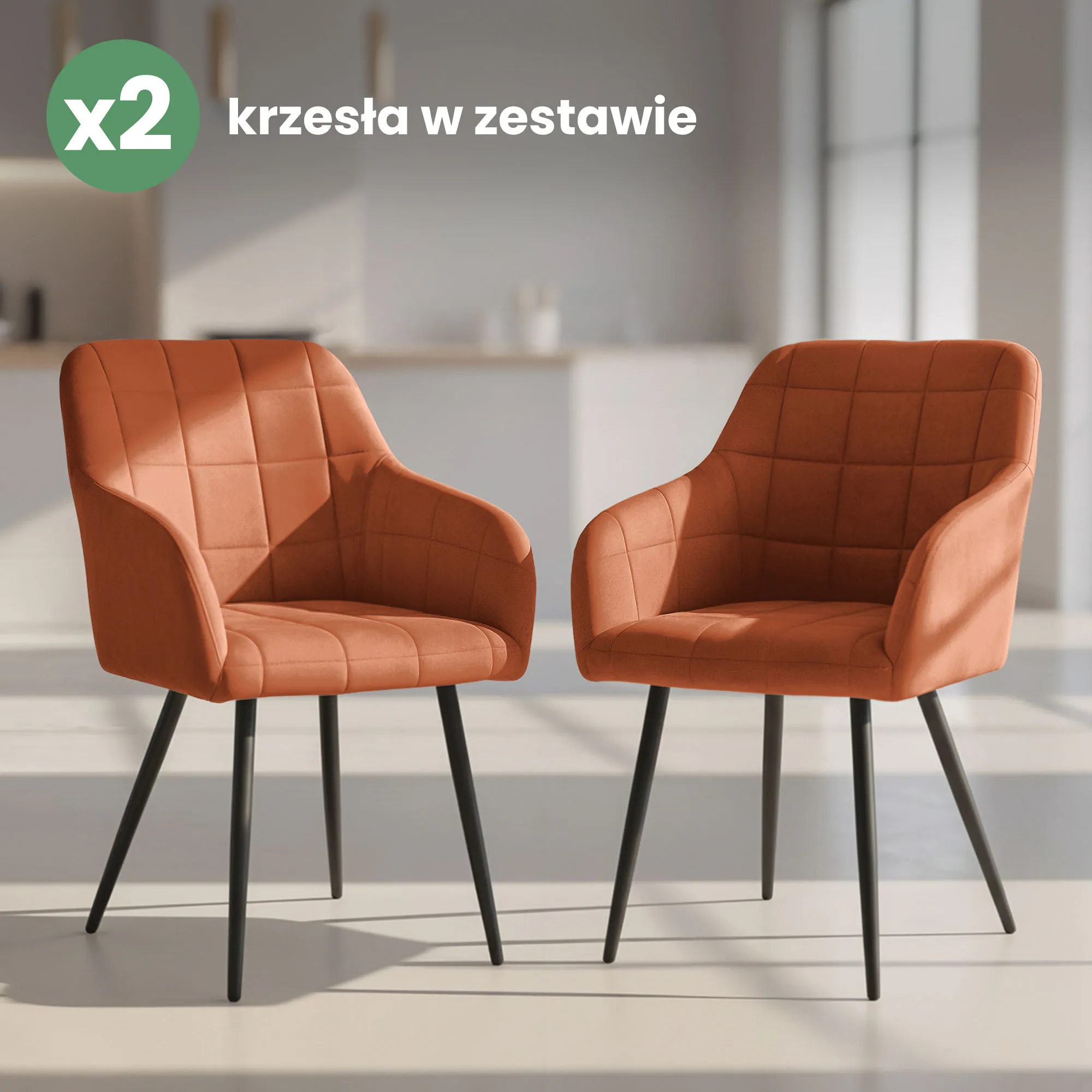 2x Krzesło tapicerowane z przeszyciami kwadratowymi Miedziane LUXANO Czarne nogi