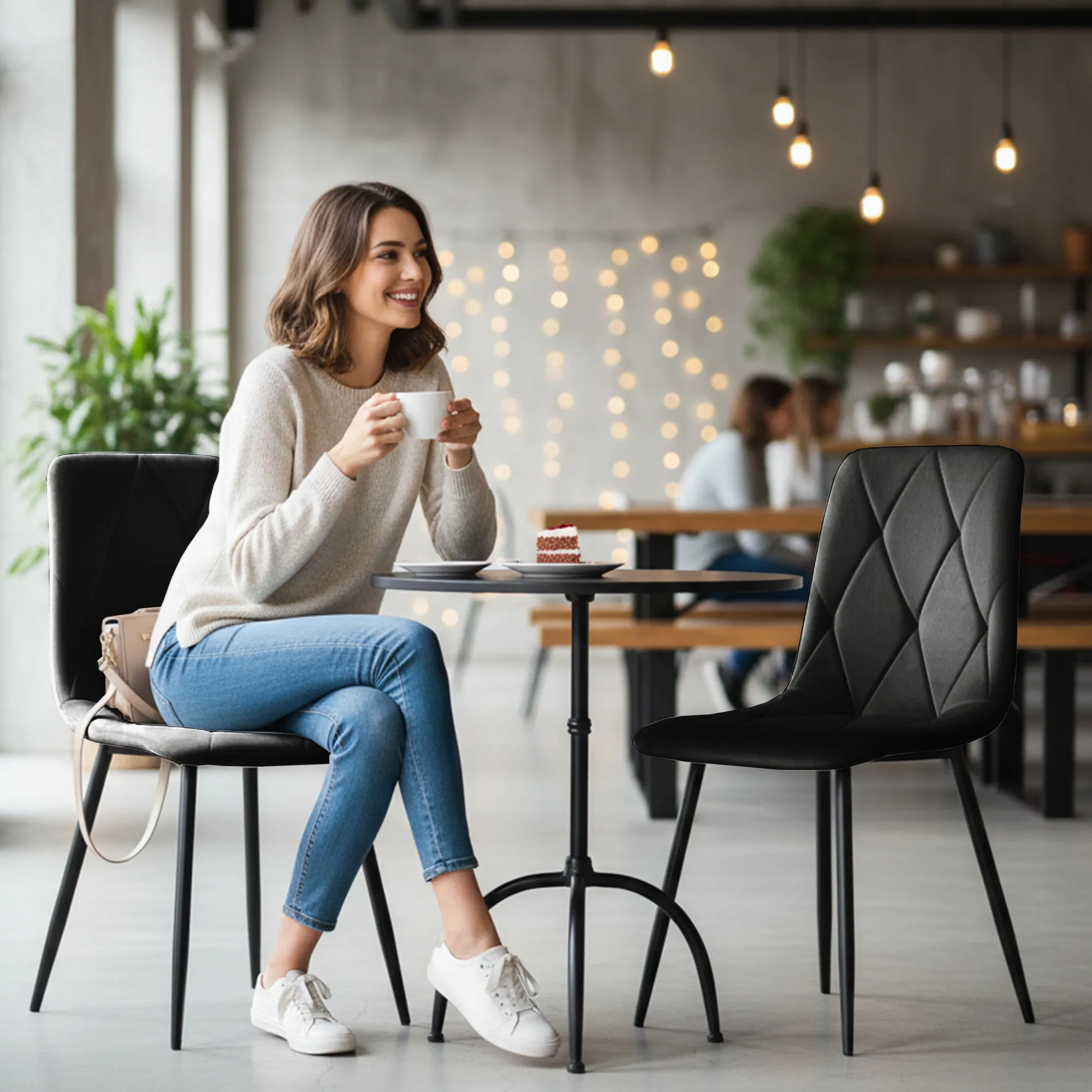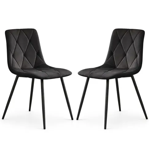 2x Welurowe krzesło tapicerowane pikowane Czarne MILO Czarne nogi