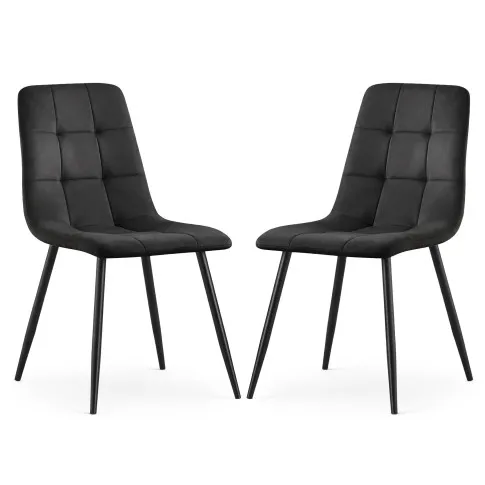 2x Welurowe krzesło tapicerowane pikowane Czarne NERO Czarne nogi