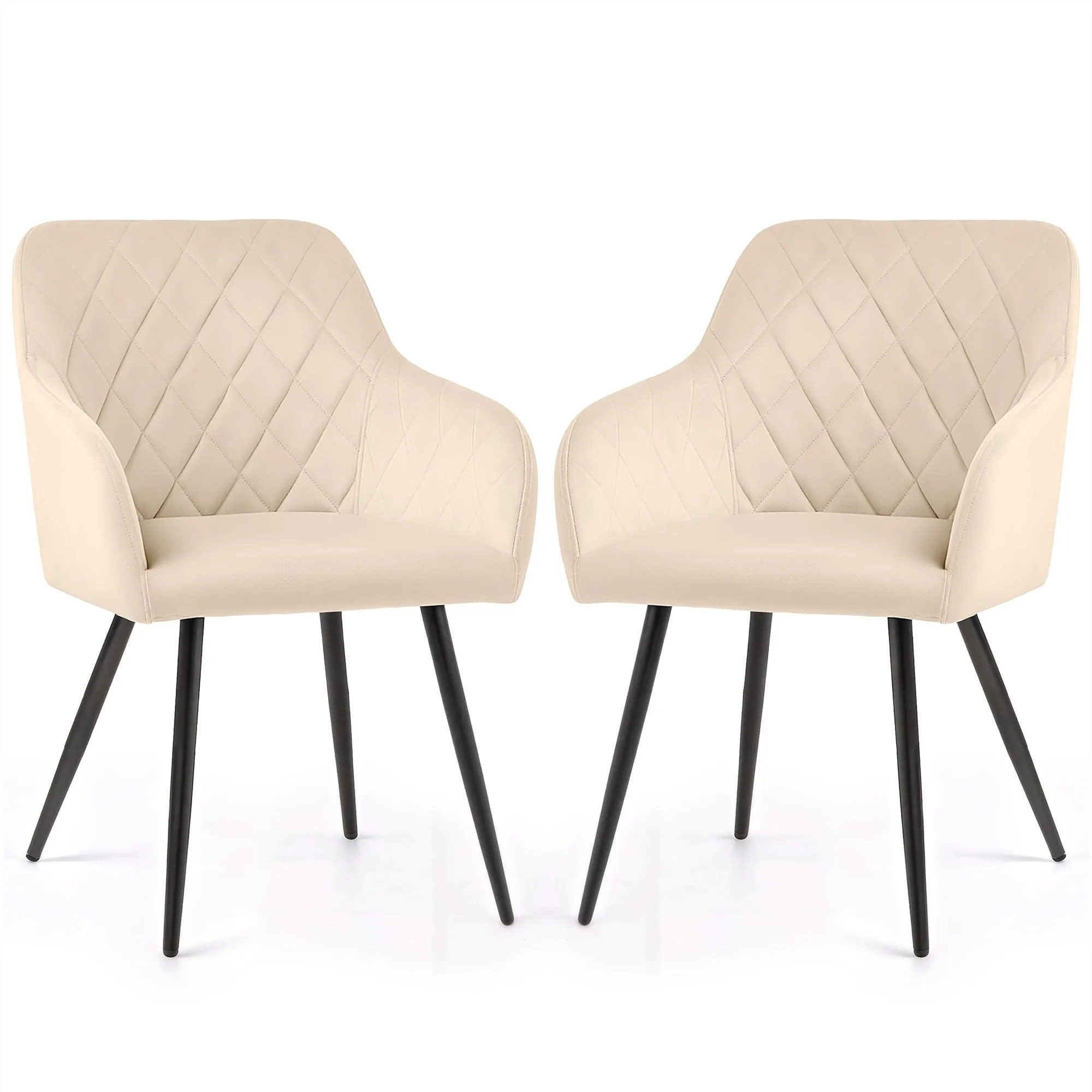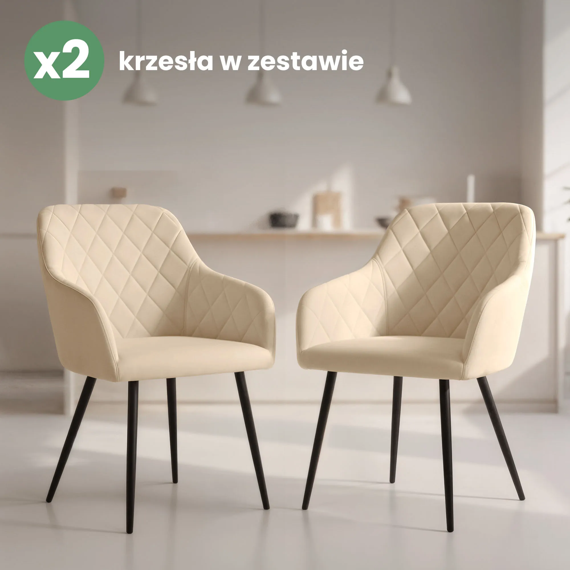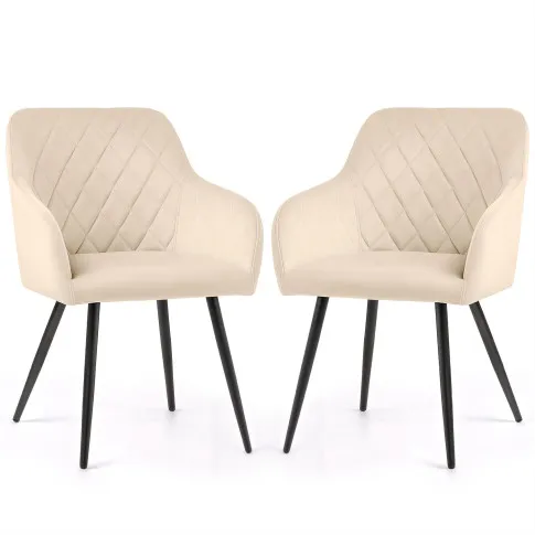 2x Welurowe krzesło tapicerowane pikowane w romby Beżowe VELTO Czarne nogi