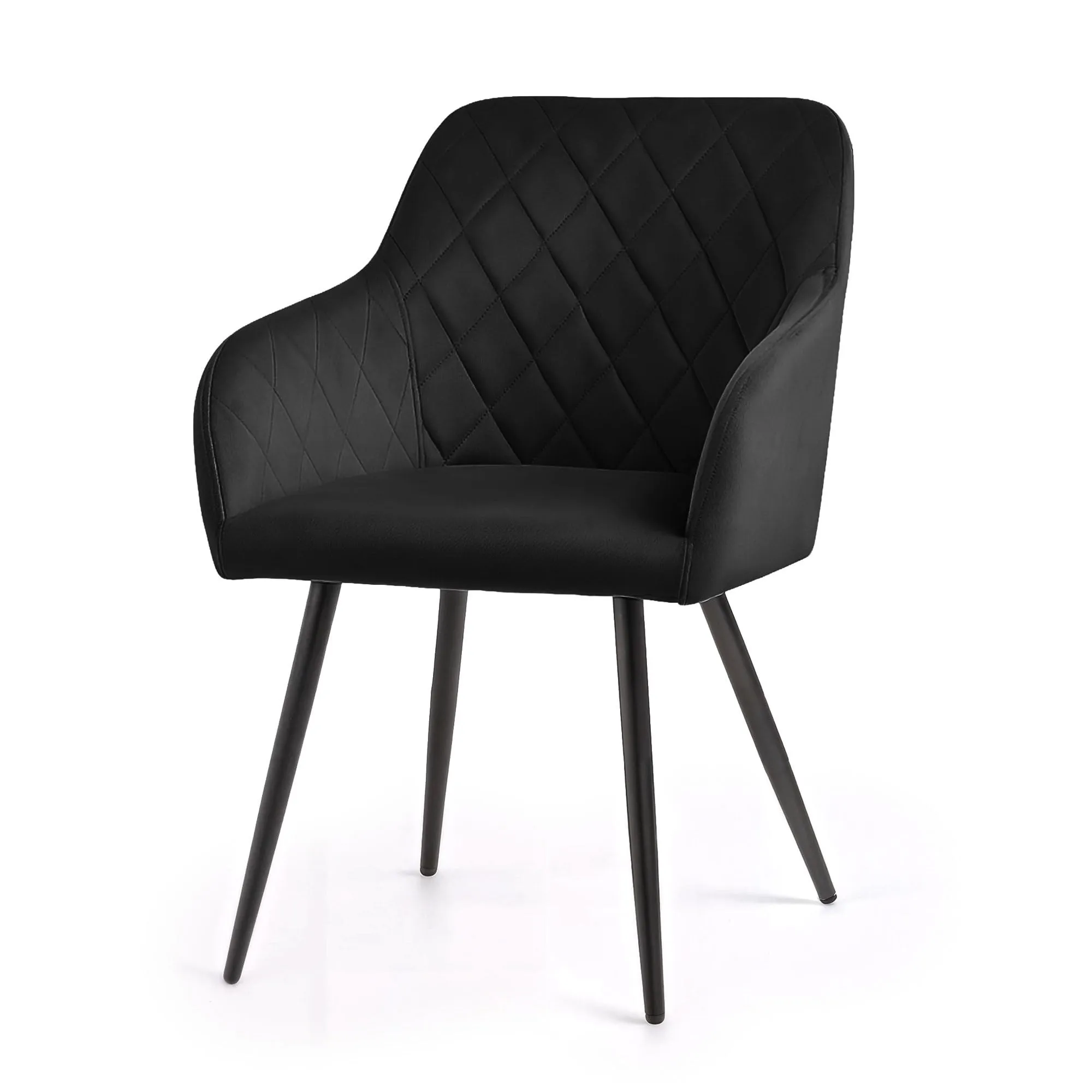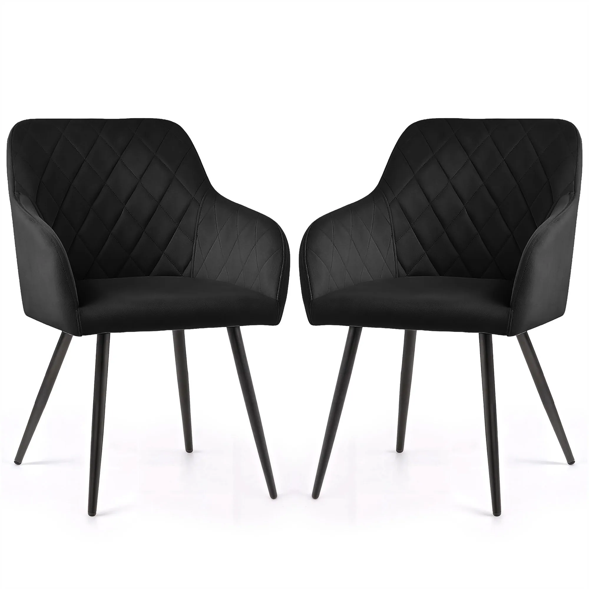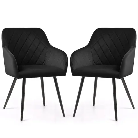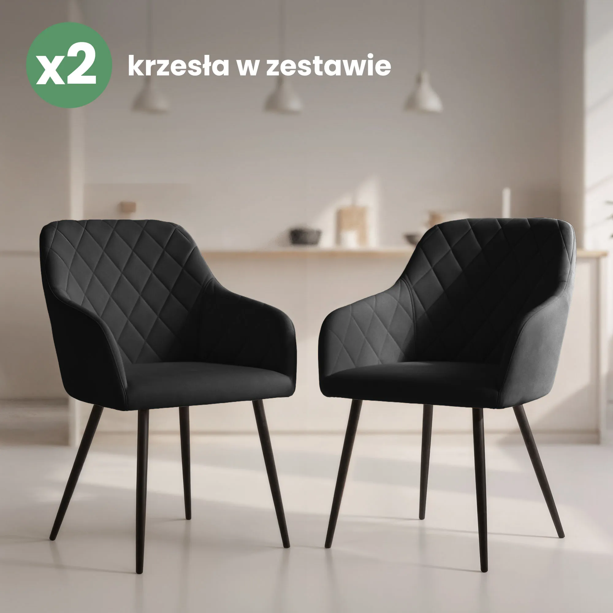 2x Welurowe krzesło tapicerowane pikowane w romby Czarne VELTO Czarne nogi