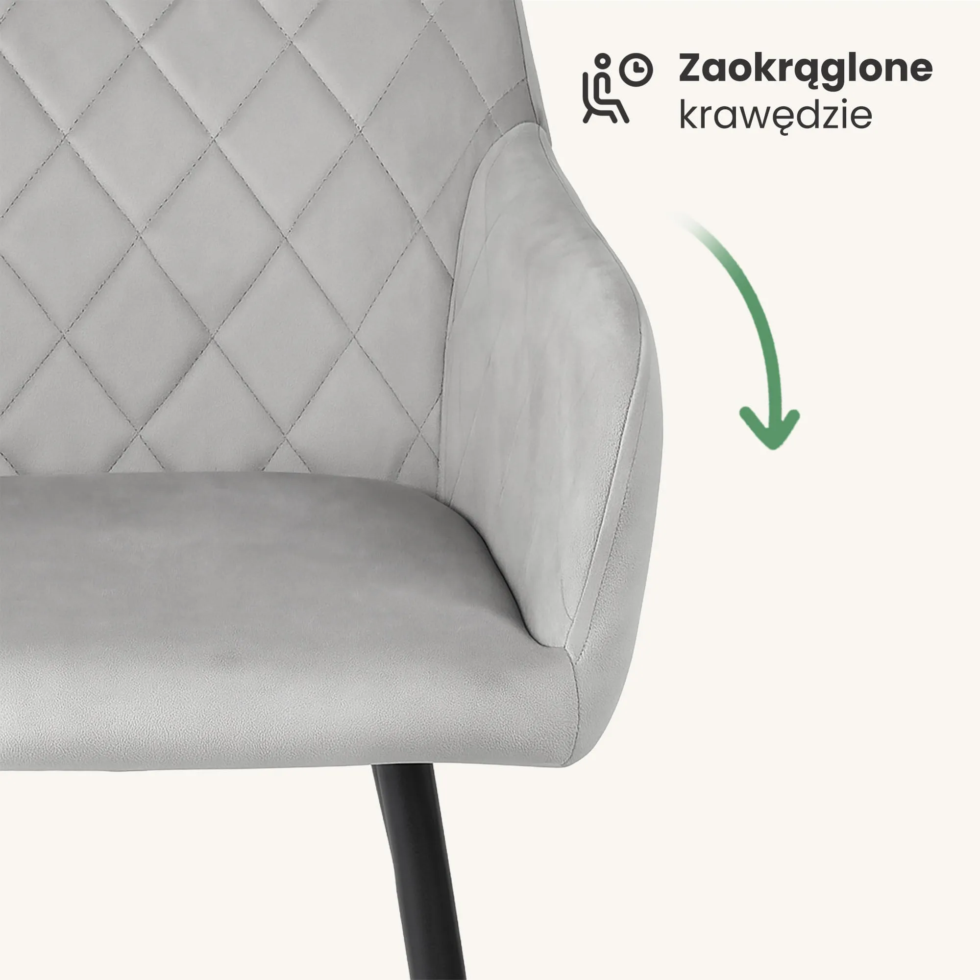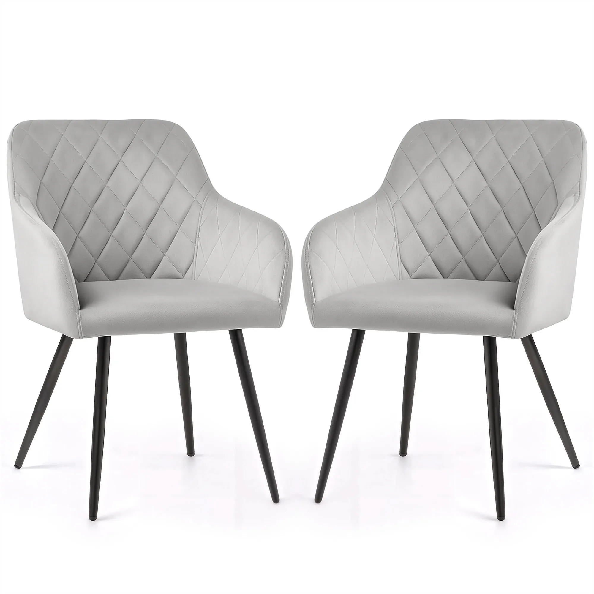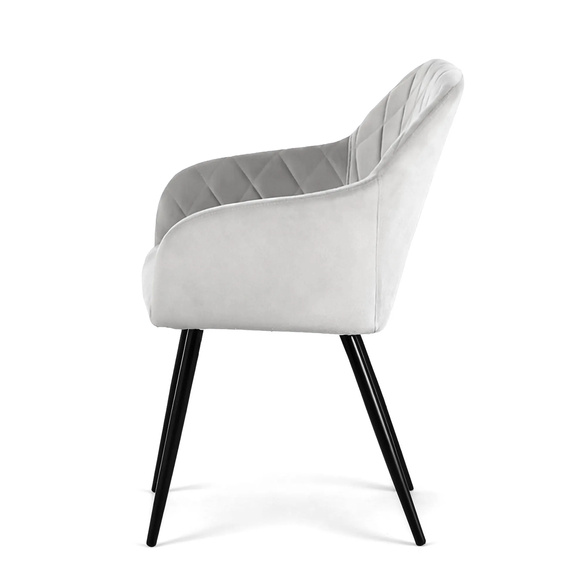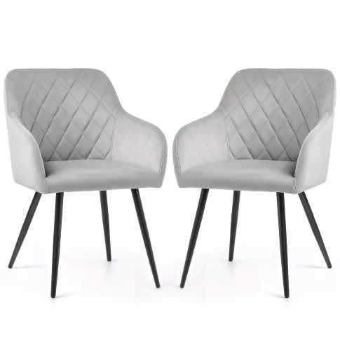 2x Welurowe krzesło tapicerowane pikowane w romby Szare VELTO Czarne nogi