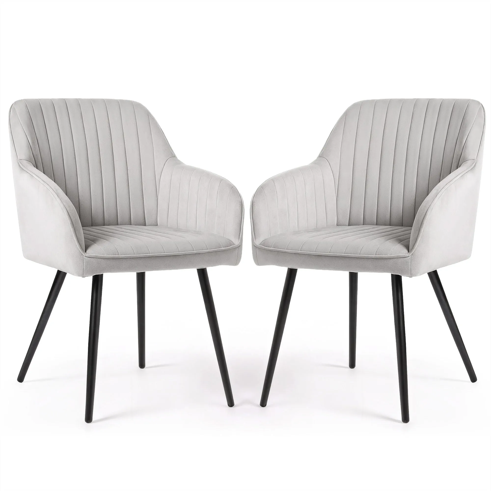 2x Welurowe krzesło tapicerowane z przeszyciami Szary FLORENCE Czarne nogi