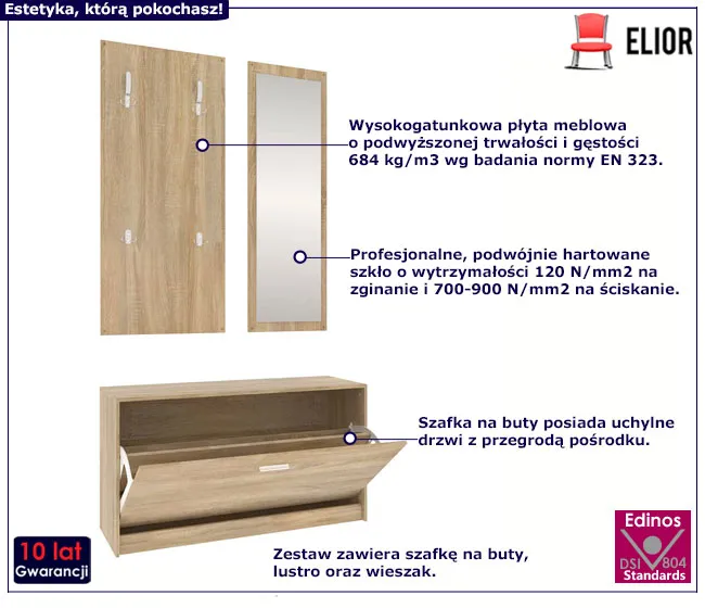 Dotyczy: Komplet mebli do przedpokoju dąb sonoma + biały - Lunes
