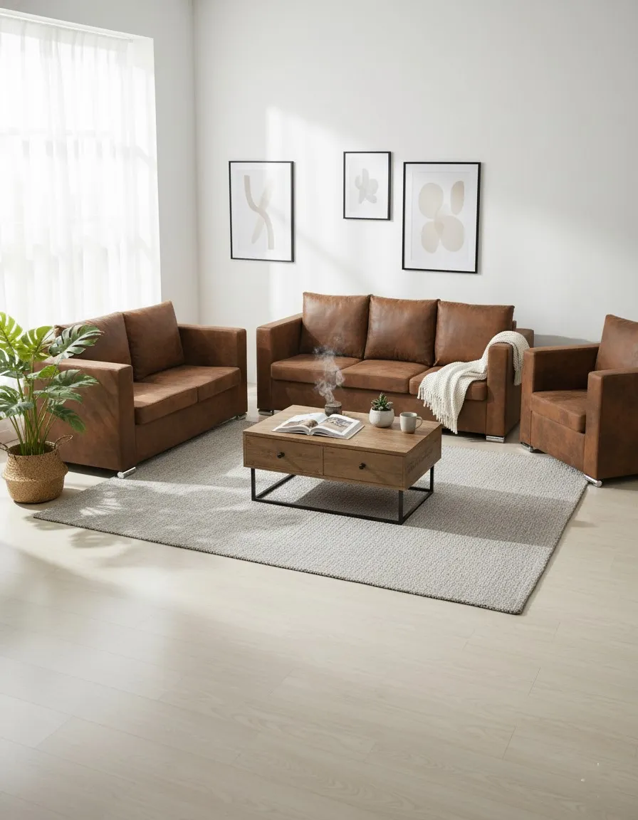 • Kolor: brązowy. W naszej ofercie posiadamy także inne zestawy wypoczynkowe do salonu.