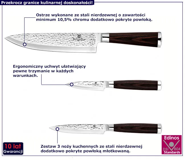 3 sztuki noży ze stali nierdzewnej z młotkowaną powłoką - Nuvis 10X