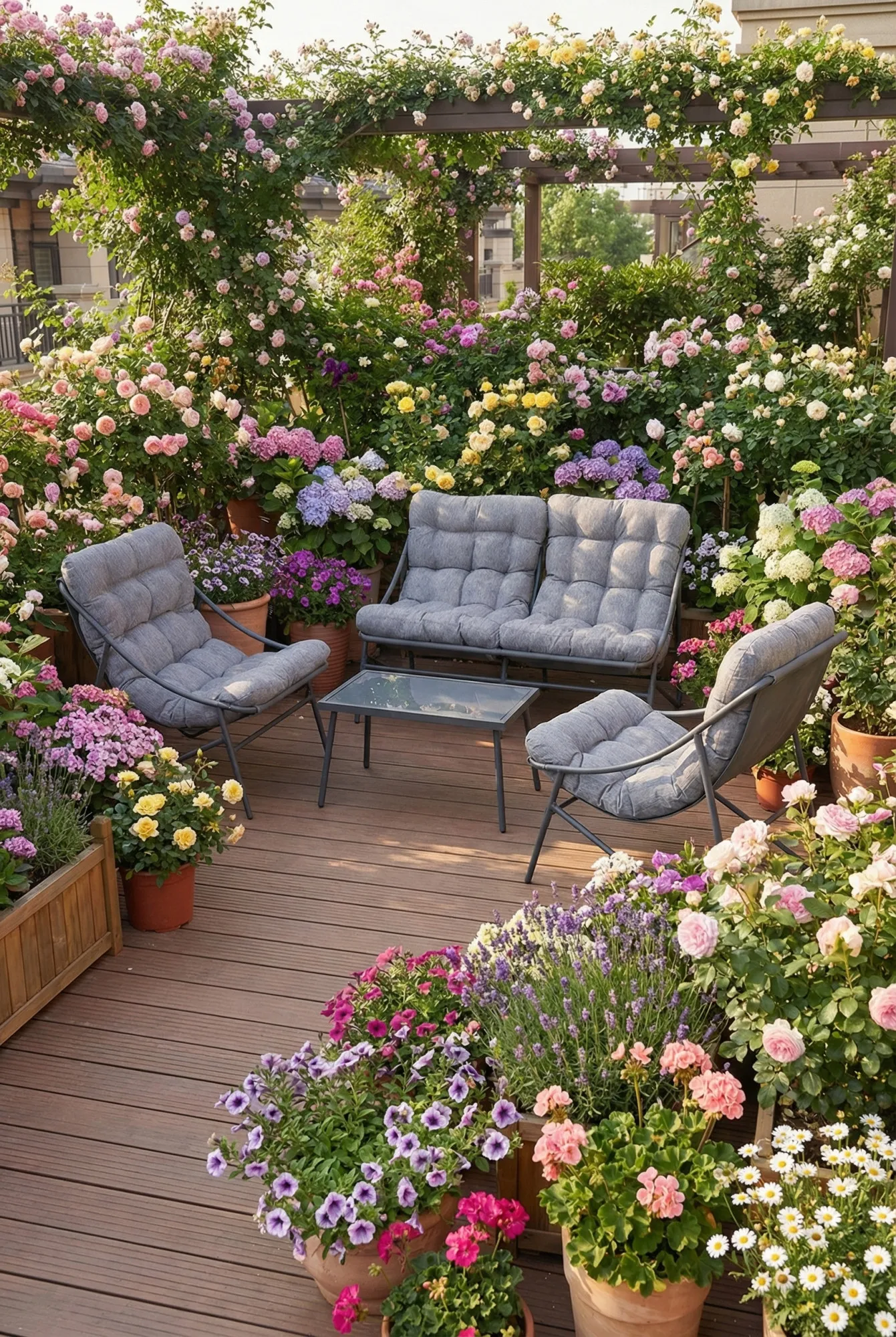 • Zestaw doskonale sprawdzający się zarówno na dużym tarasie, jak i w bardziej kameralnej przestrzeni balkonu