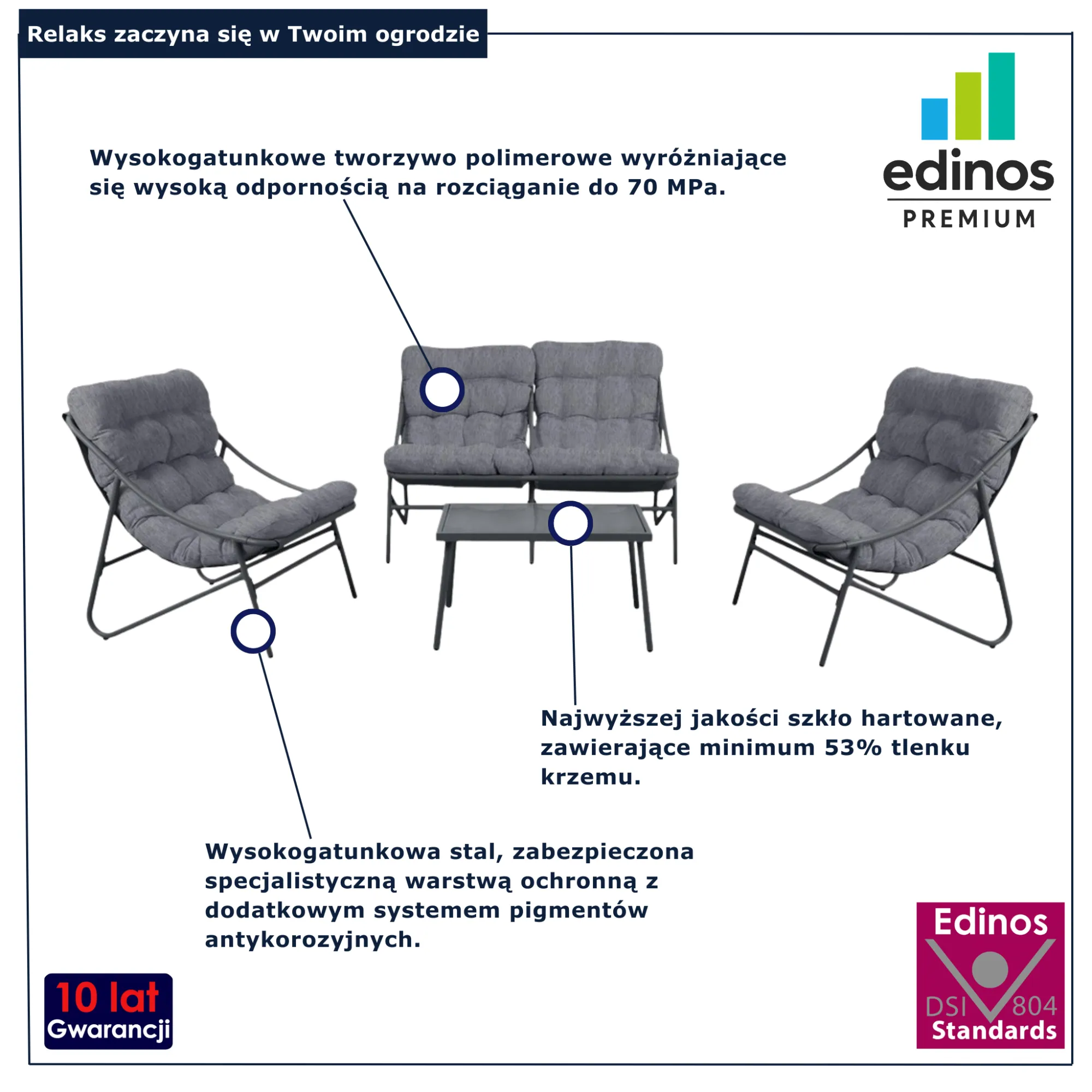 • Wygodne siedziska z miękkimi poduszkami zapewniające komfort nawet podczas długiego relaksu