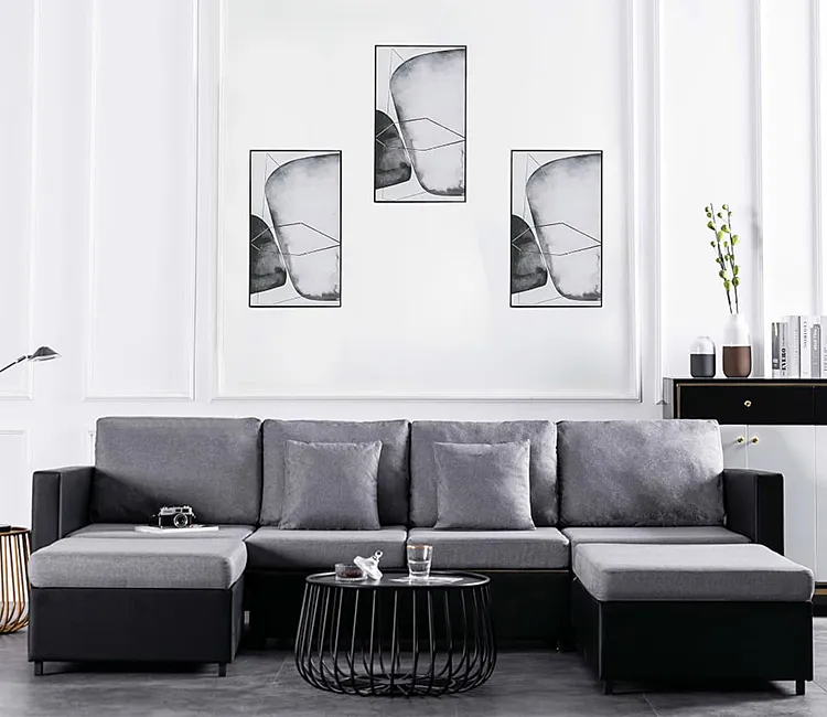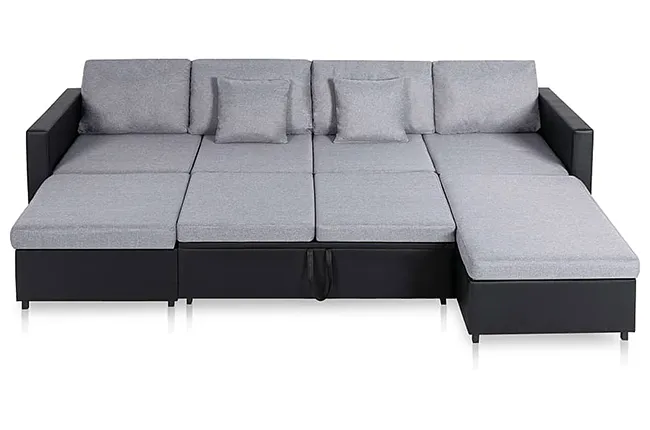 Przesyłka obejmuje 1 rozkładaną kanapę i 6 poduszek na oparcia
