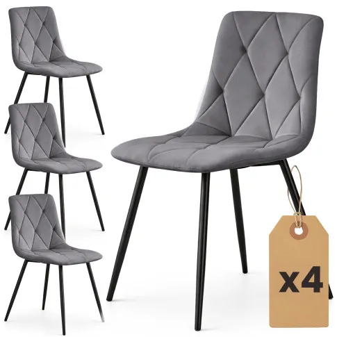 4x Welurowe krzesło tapicerowane pikowane Ciemny Grafit MILO Czarne nogi