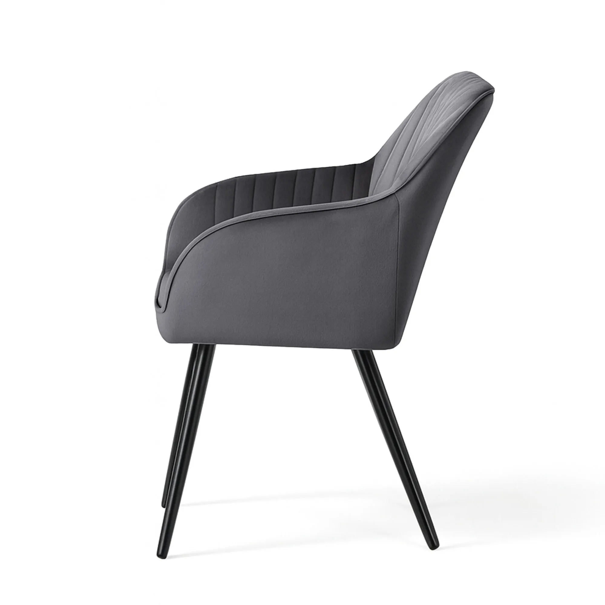 4x Welurowe krzesło tapicerowane z przeszyciami Ciemny Grafit FLORENCE Czarne nogi