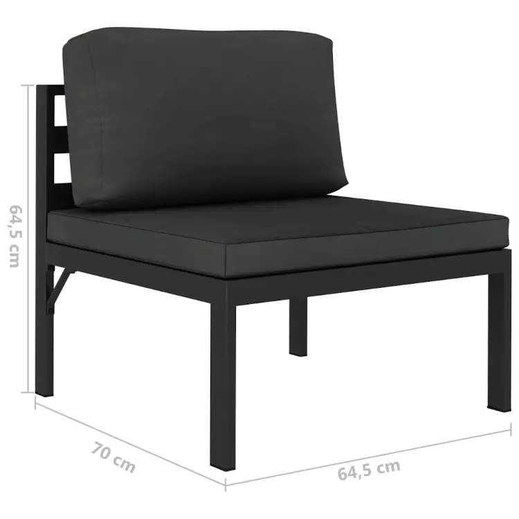 • Wymiary środkowej sofy: szerokość: 64,5 cm, głębokość: 70 cm, wysokość: 64,5 cm.