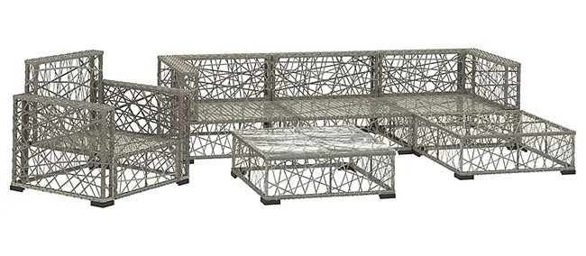 Ten wyjątkowy zestaw łączy w sobie cechy klasycznych mebli ogrodowych z nowoczesnymi standardami wykonania. Jest solidny i trwały dzięki czemu może być używany w ogrodzie lub na tarasie przez cały rok. Jego elegancka forma doskonale wkomponuje się również w salon czy przestrzeń biurową. Elementy można bez trudy przestawiać względem siebie, co pozwala na dostosowanie ich układu względem konkretnych potrzeb. Lekka konstrukcja pozwala na łatwy montaż, a zdejmowane poduszki ułatwiają ich czyszczenie.
