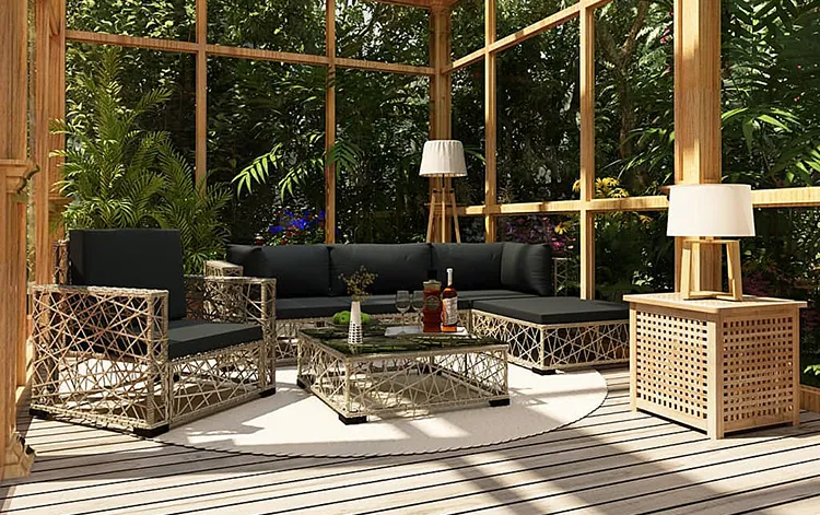 Rattan zastąpiliśmy rattanem PE (polirattan), który zachowuje ten sam wygląd, ale wykazuje znacznie większą odporność na warunki atmosferyczne. W przeciwieństwie do mebli rattanowych, do polirattanu nie dostanie się wilgoć. Jest on też odporny na działanie promieni UV co sprawia, że idealnie nadaje się do produkcji mebli ogrodowych, często narażonych na działanie zmiennych warunków atmosferycznych.
