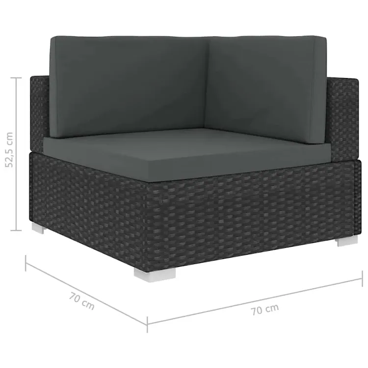 • Wymiary sofy narożnej: szerokość: 70 cm, głębokość: 70 cm, wysokość: 52,5 cm.