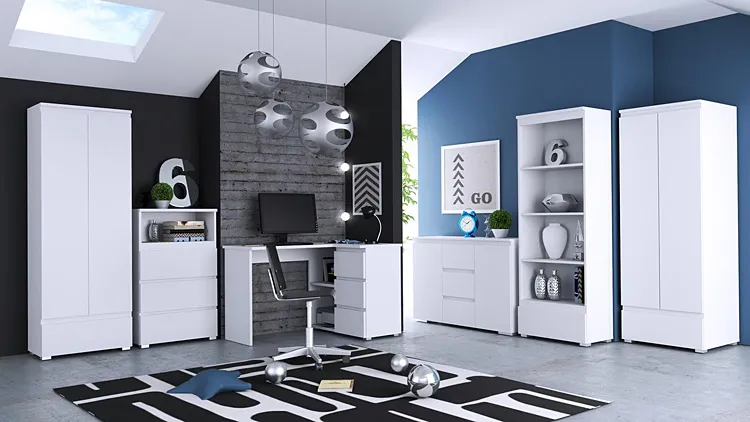 • idealnie pasuje do pokojów dziecięcych, młodzieżowych oraz do wyposażenia biur, dostosowując się do różnorodnych potrzeb użytkowników.