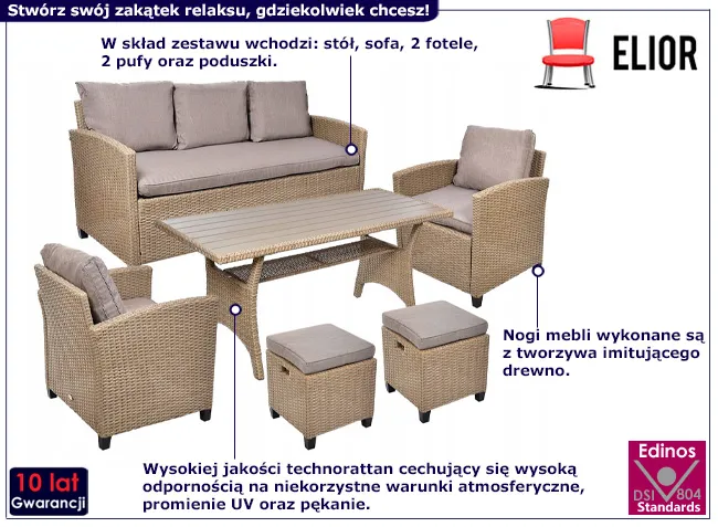• Kolor: beżowy. Kliknij w link i sprawdź także inne zestawy ogrodowe w sklepie Edinos.pl.