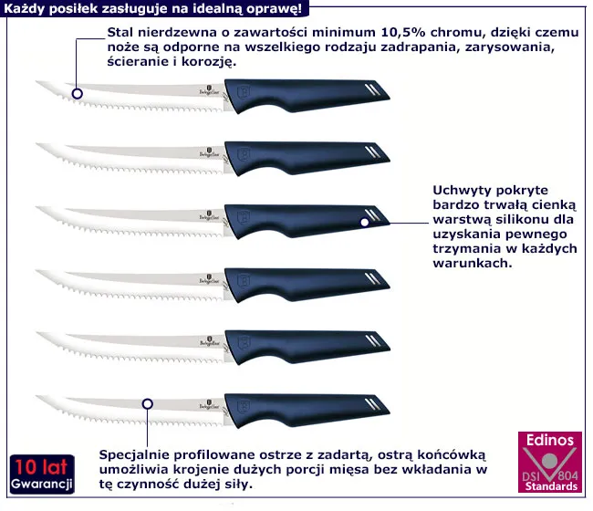 Dotyczy: Zestaw 6 sztuk stalowych noży do steków - Paello 3X