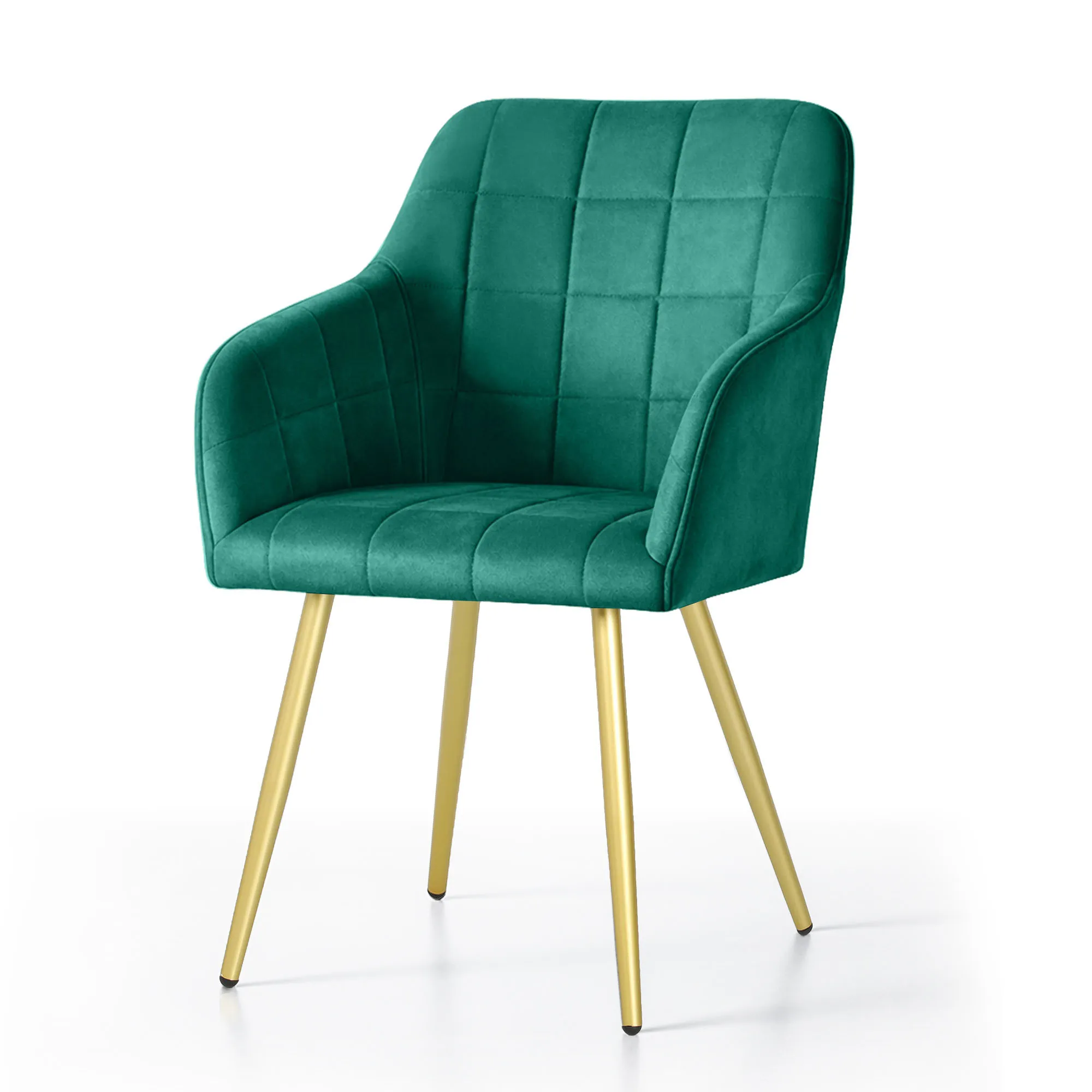 6x Krzesło tapicerowane z przeszyciami kwadratowymi Butelkowa Zieleń LUXANO Złote nogi