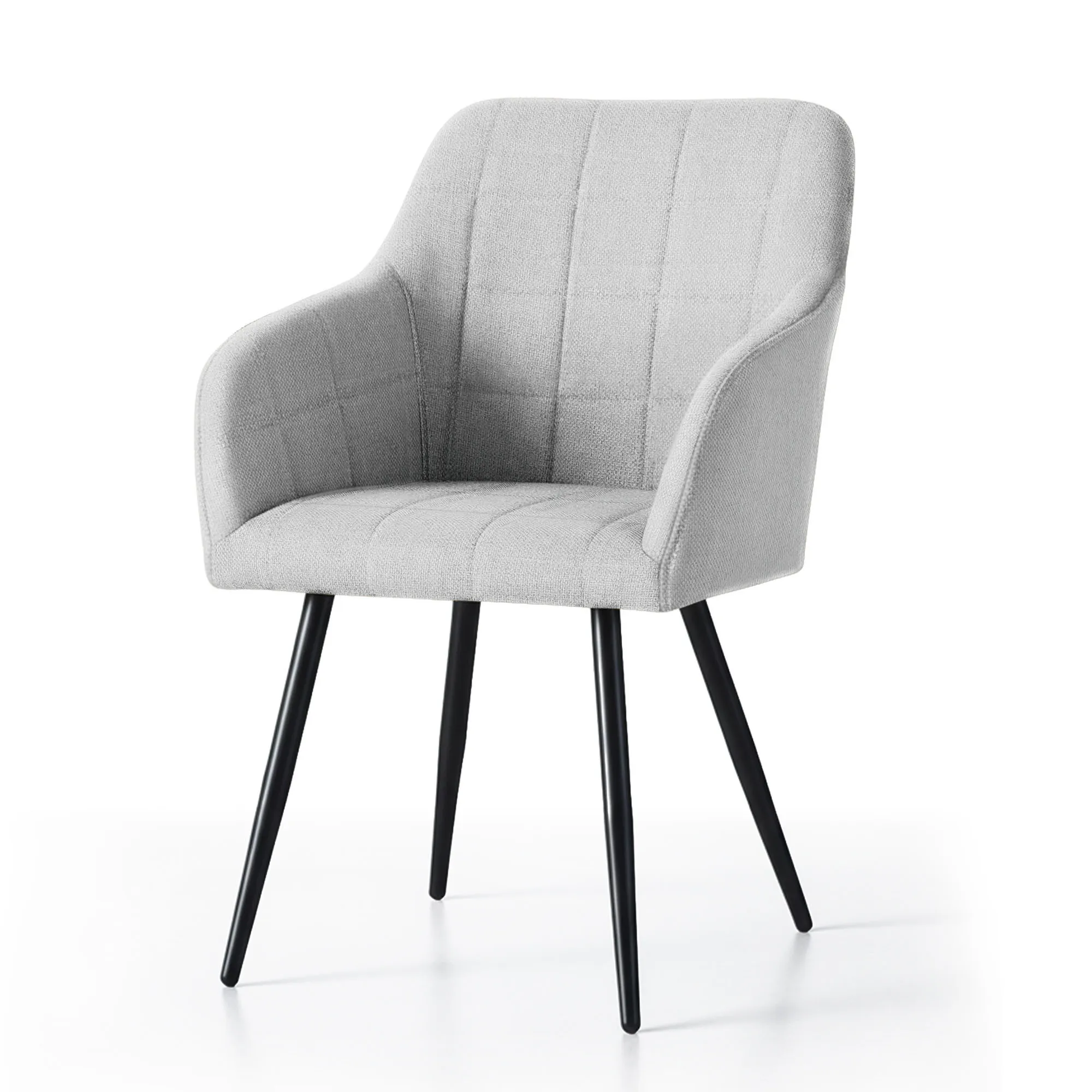 6x Krzesło tapicerowane z przeszyciami kwadratowymi Jasny Szary LUXANO Czarne nogi tkanina Lumos