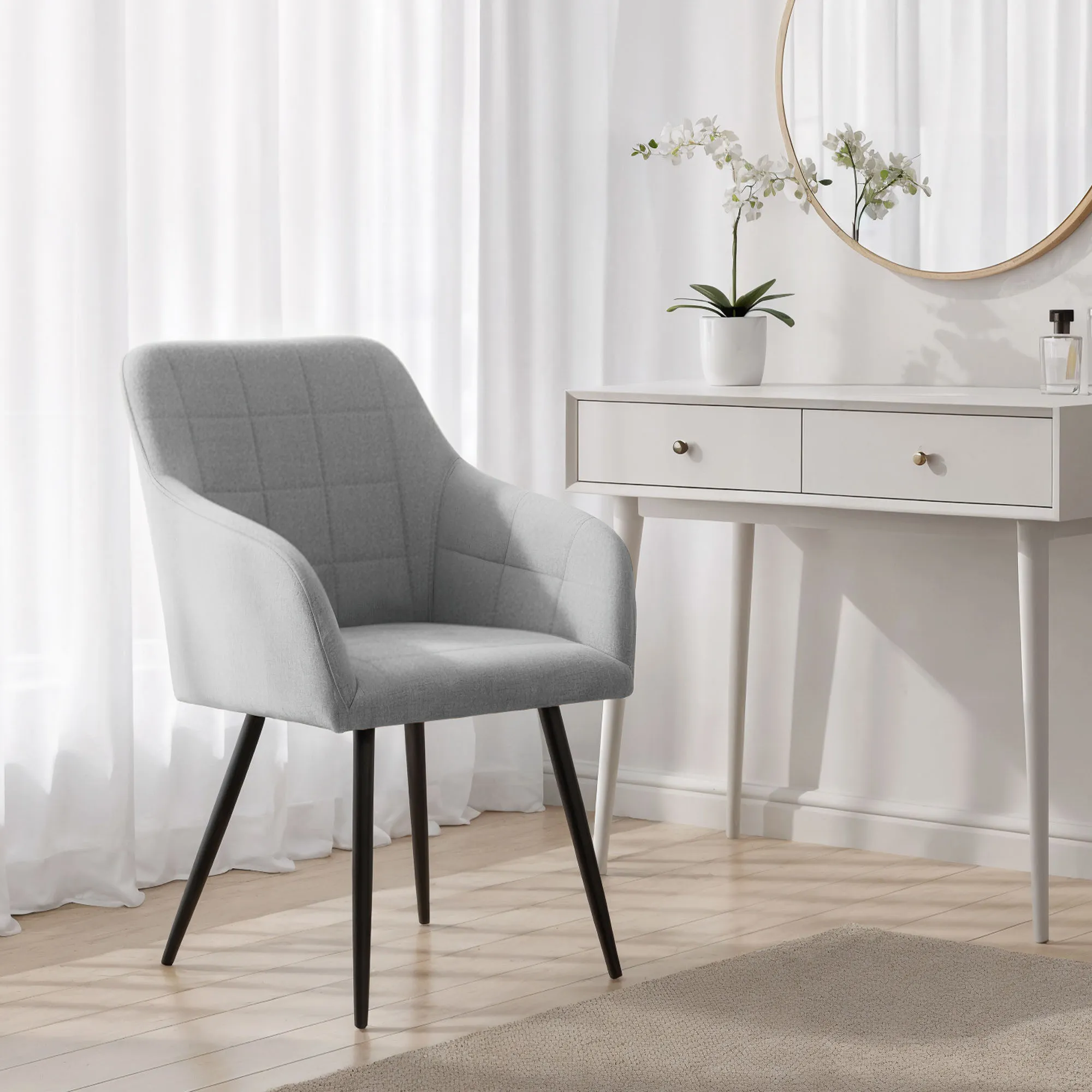 Krzesła tapicerowane łączą estetyczny wygląd z komfortem użytkowania i dobrze wpisują się w różne style wnętrz. Ich uniwersalna forma sprawia, że są odpowiednie do jadalni, salonu lub przestrzeni biurowej. Dostępne są w dwóch wariantach materiałowych – w tkaninie Lumos lub w welurze.