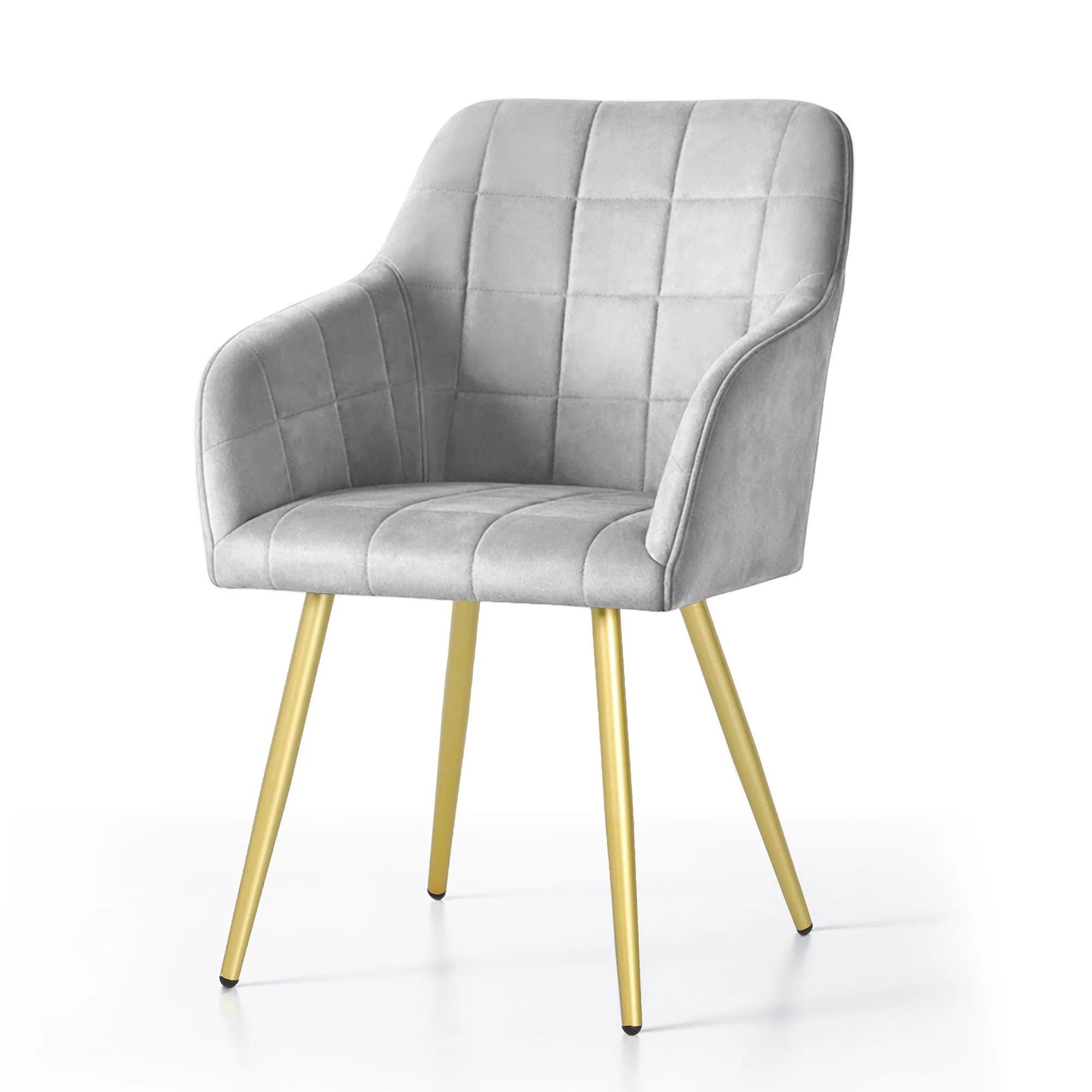 6x Krzesło tapicerowane z przeszyciami kwadratowymi Szare LUXANO Złote nogi