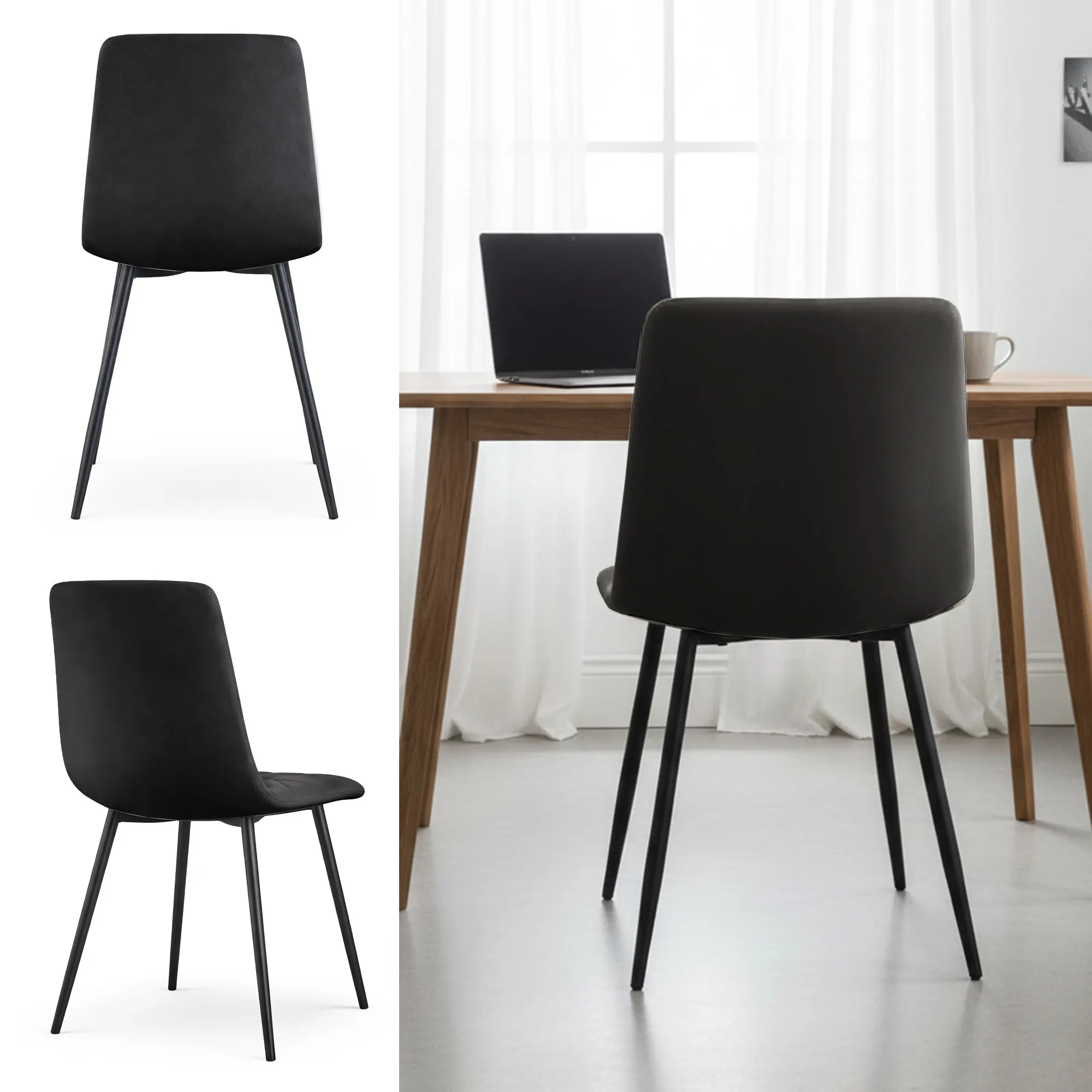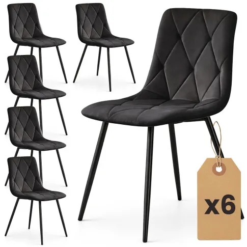 6x Welurowe krzesło tapicerowane pikowane Czarne MILO Czarne nogi