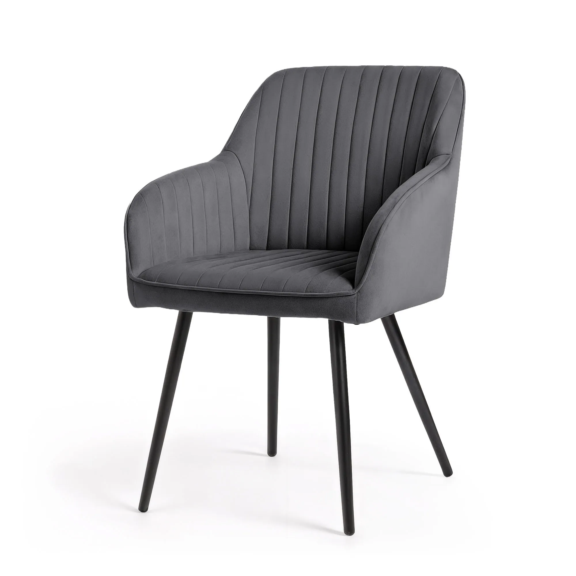 6x Welurowe krzesło tapicerowane z przeszyciami Ciemny Grafit FLORENCE Czarne nogi