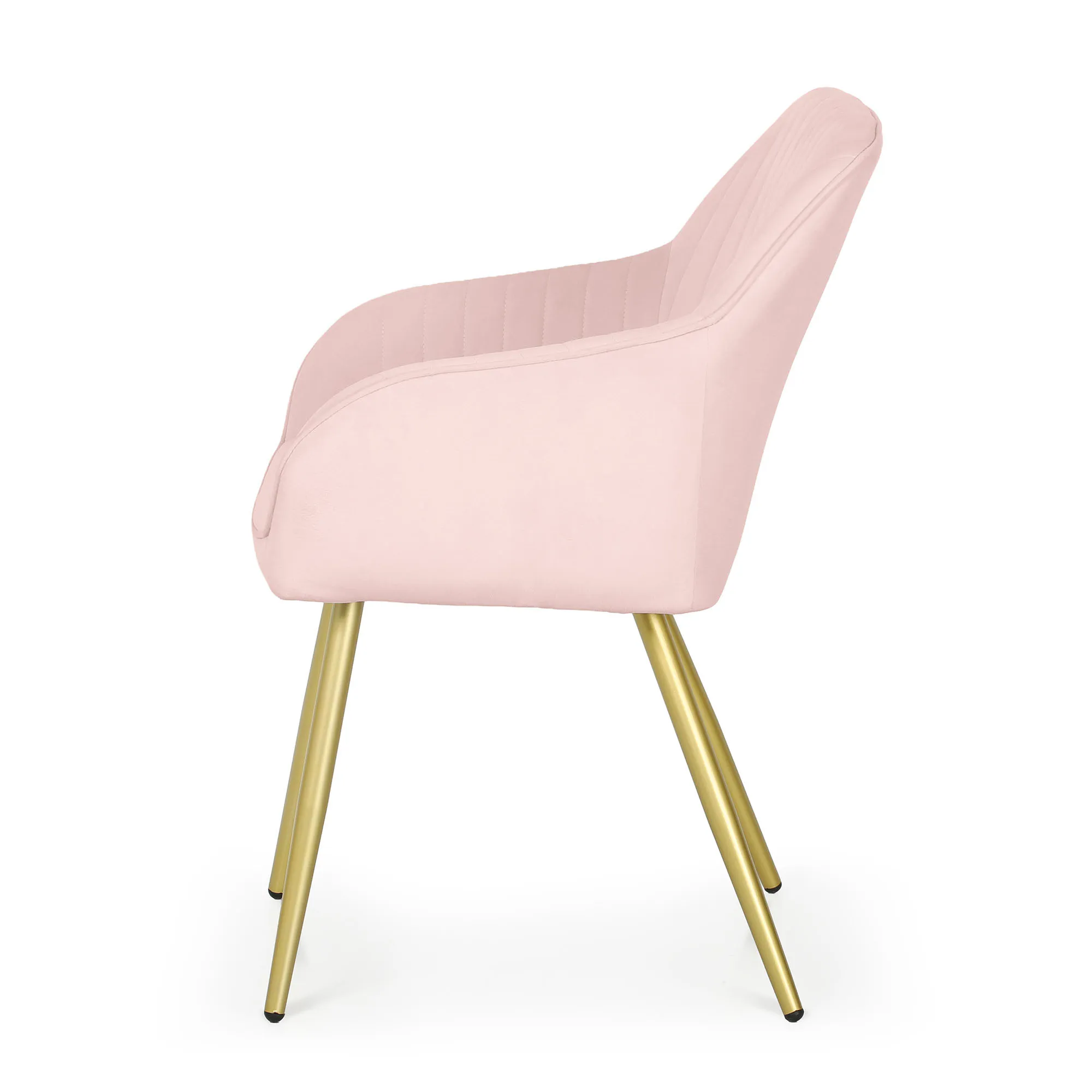 6x Welurowe krzesło tapicerowane z przeszyciami Pudrowy Róż FLORENCE Złote nogi
