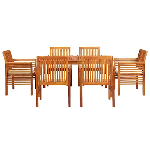 • 7-elementowy zestaw, w tym stół i 6 krzeseł z poduszkami.