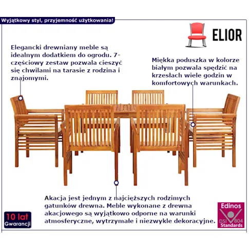 • Kolor: naturalne drewno akacjowe oraz biały. W naszej ofercie posiadamy także inne zestawy mebli ogrodowych.