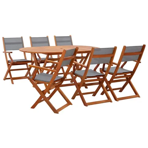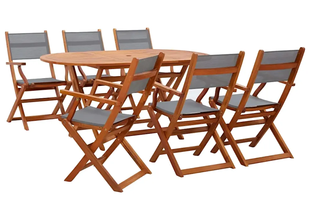 Zestaw mebli ogrodowych Esential marki Edinos Premium to propozycja dla miłośników stylu, którzy pragną stworzyć w ogrodzie oazę elegancji i komfortu. Wykonany z trwałego drewna eukaliptusowego, wykończonego ochronnym olejem, Esential zachwyca naturalnym wykończeniem i ponadczasową formą, wpisując się w aranżacje o różnorodnej estetyce. W zestawie znajdziesz duży stół oraz sześć wygodnych krzeseł z podłokietnikami, które zapraszają do długich rozmów i relaksu na świeżym powietrzu. Stół posiada praktyczny otwór na parasol, pozwalając cieszyć się spotkaniami z bliskimi bez względu na pogodę. Krzesła i stół są składane, co nie tylko ułatwia przechowywanie, ale także sprzyja wygodzie użytkowania na co dzień. Esential to zestaw, który łączy funkcjonalność z elegancją, stanowiąc piękne i wygodne wyposażenie każdego ogrodu lub tarasu.