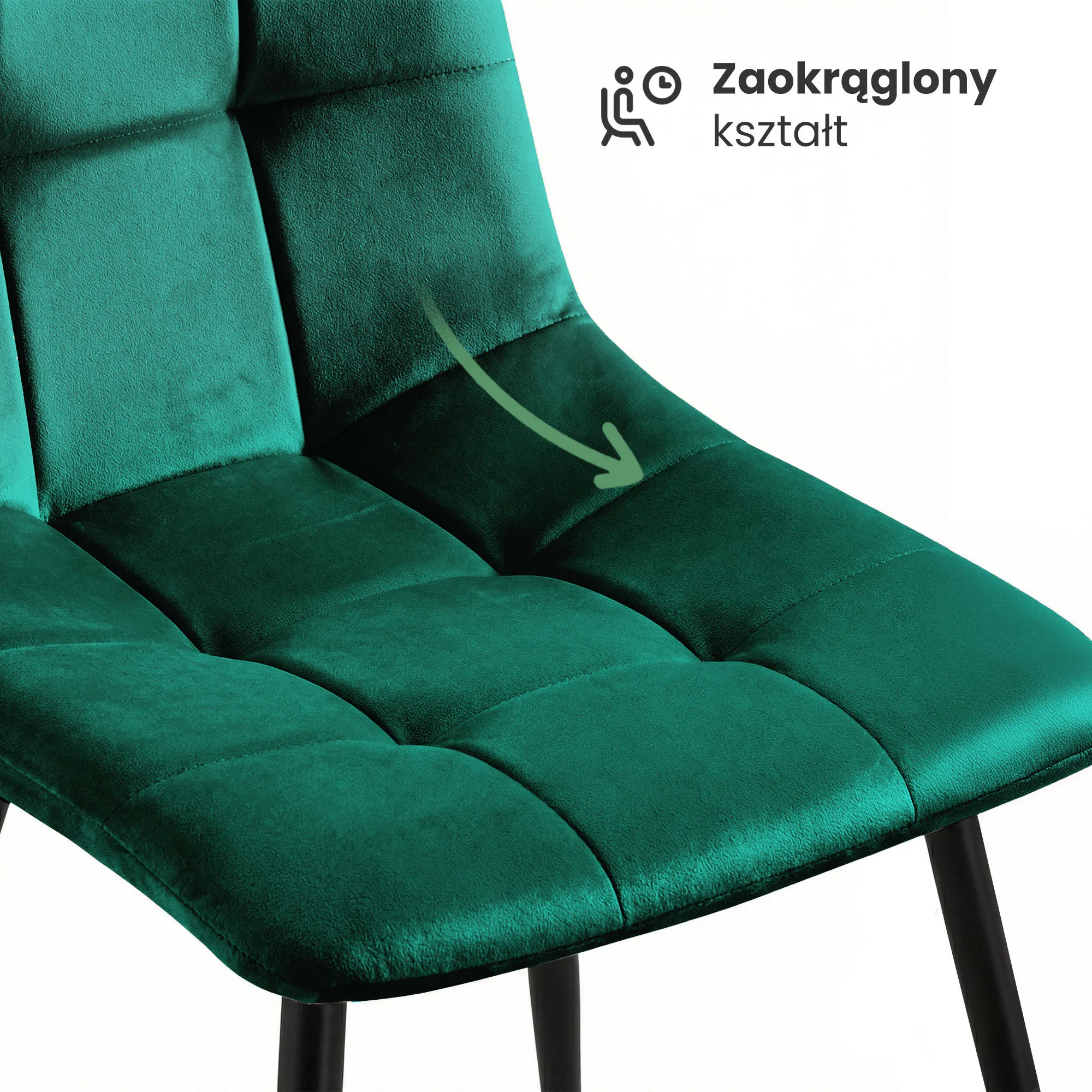 8x Welurowe krzesło tapicerowane pikowane Butelkowa Zieleń NERO Czarne nogi