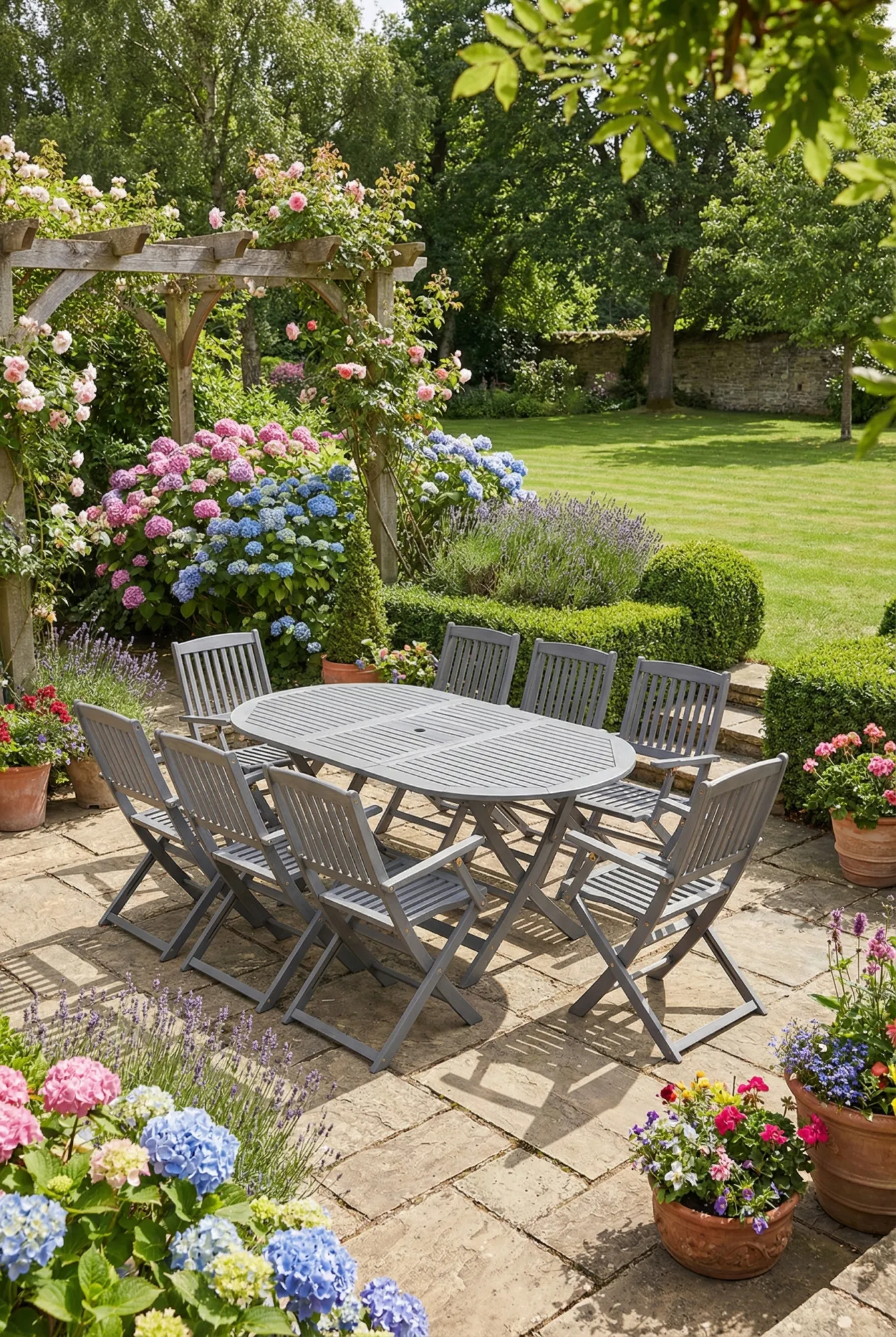 • Składany stół i krzesła – praktyczne rozwiązanie, które ułatwia przechowywanie i oszczędza miejsce.