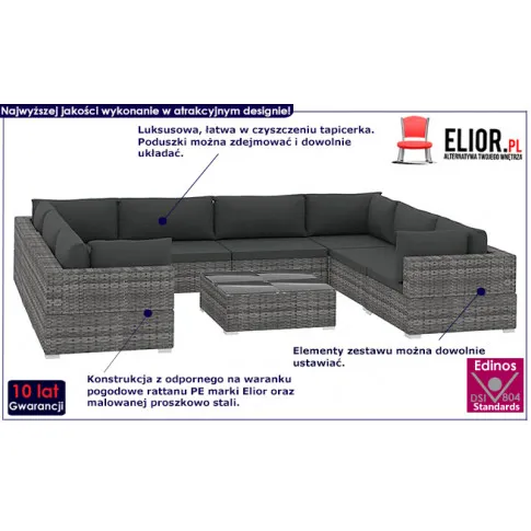 Materiał: rattan PE marki Edinos Premium + rama ze stali malowanej proszkowo