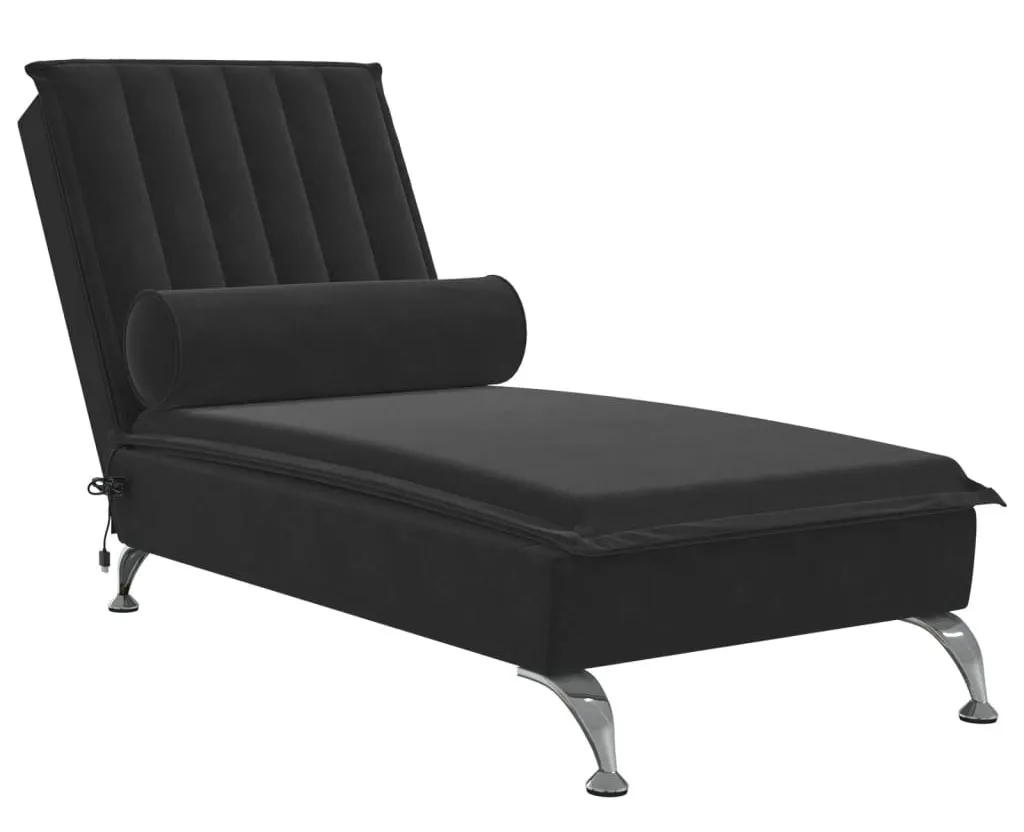 Aksamitny czarny szezlong z masującą poduszką - Beluso 3X