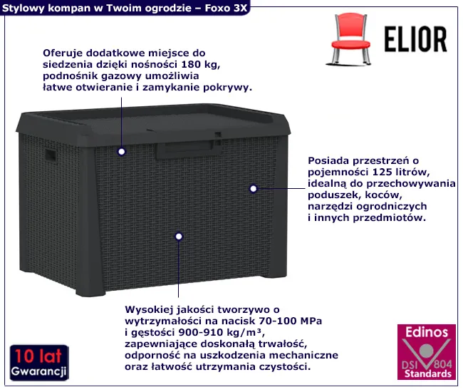 Dotyczy: Brązowa skrzynia ogrodowa z poduszką na siedzisku - Omer 4X
