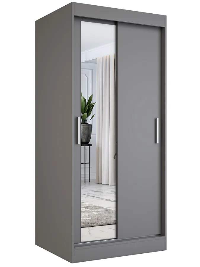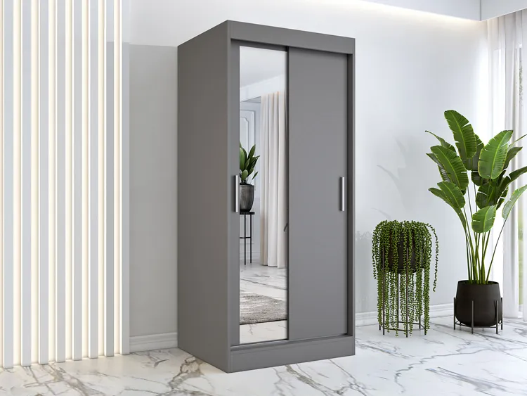 - Duże lustro na froncie szafy optycznie powiększające przestrzeń.