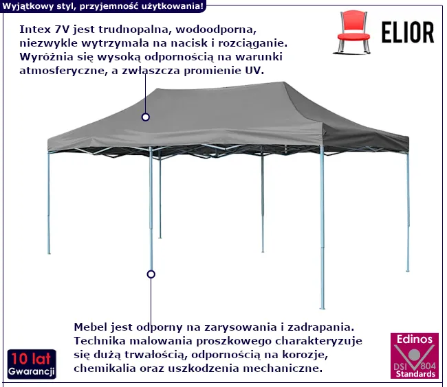 • Kolor: antracyt. W naszej ofercie posiadamy także inne namioty ogrodowe.