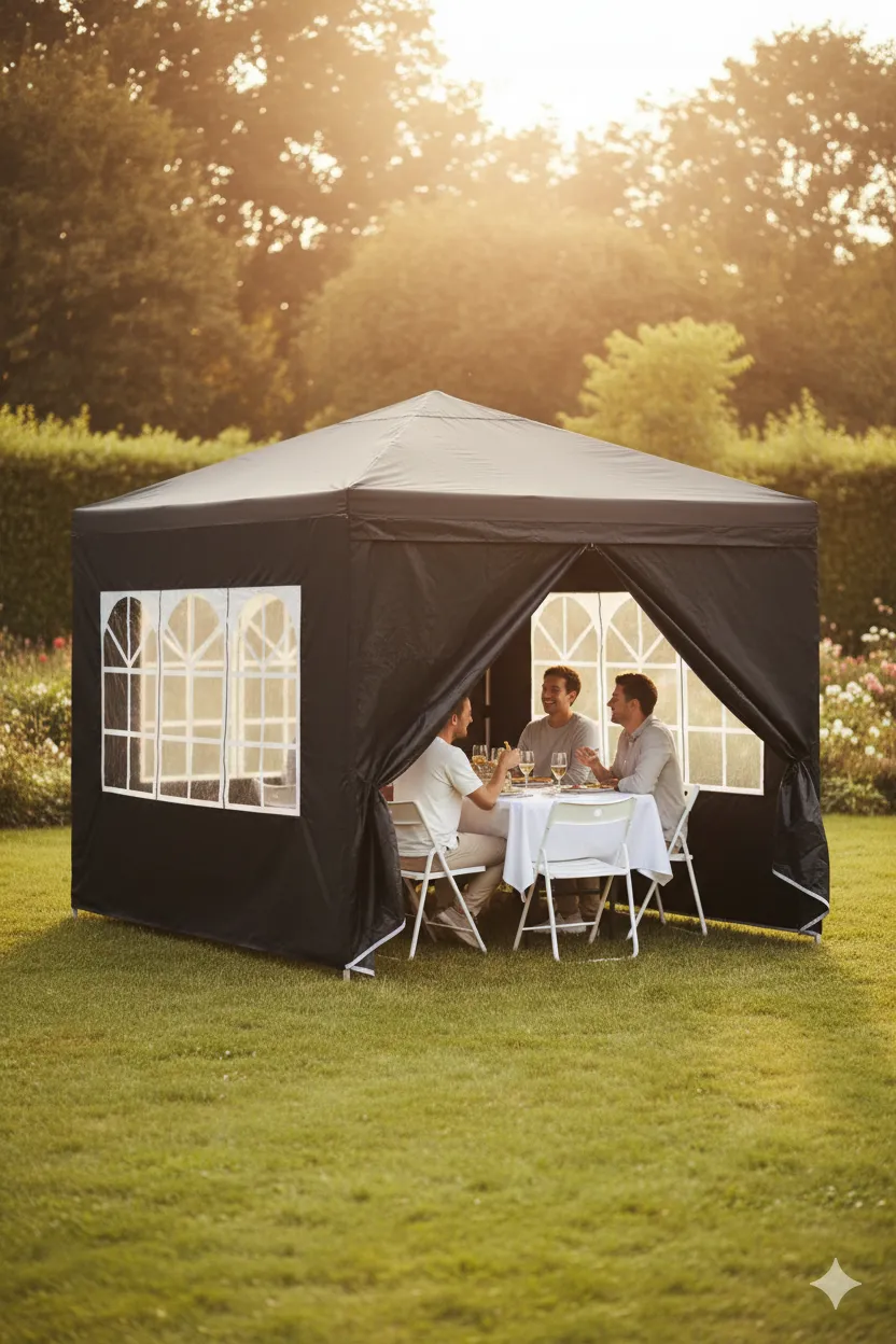 Antracytowy namiot ogrodowy z oknami - Bentis