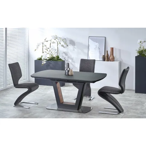 Rewelacyjnie i jakże profesjonalnie zaprojektowany stół Climer z najnowszej kolekcji Edinos Premium.pl zachwyca gustowną, pełną pomysłowości a zarazem ponadczasowej klasy formą. Ten designerski projekt meblowy wpisujący się w najnowsze aranżacyjne trendy może spokojnie zdobić zarówno wyrafinowanie zaprojektowane mieszkanie, jak i komercyjne przestrzenie o loftowej czy kolonialnej stylistyce. Nic w tym dziwnego - jakże wygodny w użytkowaniu i przepięknie wykonany stół Climer należy do totalnych unikatów pod względem wizualnym. Prostokątny, gładki i matowy blat w nietypowym, antracytowym matowym wydaniu został tu dopełniony stalową podstawą w antracytowo - orzechowym kolorze. Dzięki takiemu kolorystycznemu zestawieniu Climer cechuje elegancja i nowoczesny szyk. Właśnie tego typu projekty meblowe cieszą się obecnie ogromną popularnością wśród dekoratorów wnętrz. Minimalistyczna elegancja, piękno tkwiące w prostocie formy a do tego subtelna nonszalancja wynikająca ze starannie dobranych barw… No właśnie, to wszystko sprawia, że pełen modernizmu i nowoczesnej nonszalancji stół Climer zachwyca wciąż na nowo.