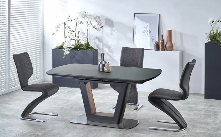 Są takie meble, które od razu przyciągają naszą uwagę i długo nie dają o sobie zapomnieć. Takie meble, które stanowią centralne punkty pomieszczenia. Z całą pewnością można do nich zaliczyć doskonale wykonany stół rozkładany Climer! Wyjątkowo zaaranżowany, industrialny Climer wniesie do Twojego wnętrza powiew aranżacyjnej świeżości. Razem z nim stworzysz unikatowy, ciekawy układ dekoratorski, który zachwyci Twoich bliskich. Climer pomoże Ci również w codziennym komforcie, bo jego szeroki, rozkładany blat to doskonałe miejsce zarówno do mnieszych, jak i większych spotkań. Nie tylko rodzina, ale i znajomi pomieszczą się przy pięknym blacie stołu Climer w antracytowej odsłonie.