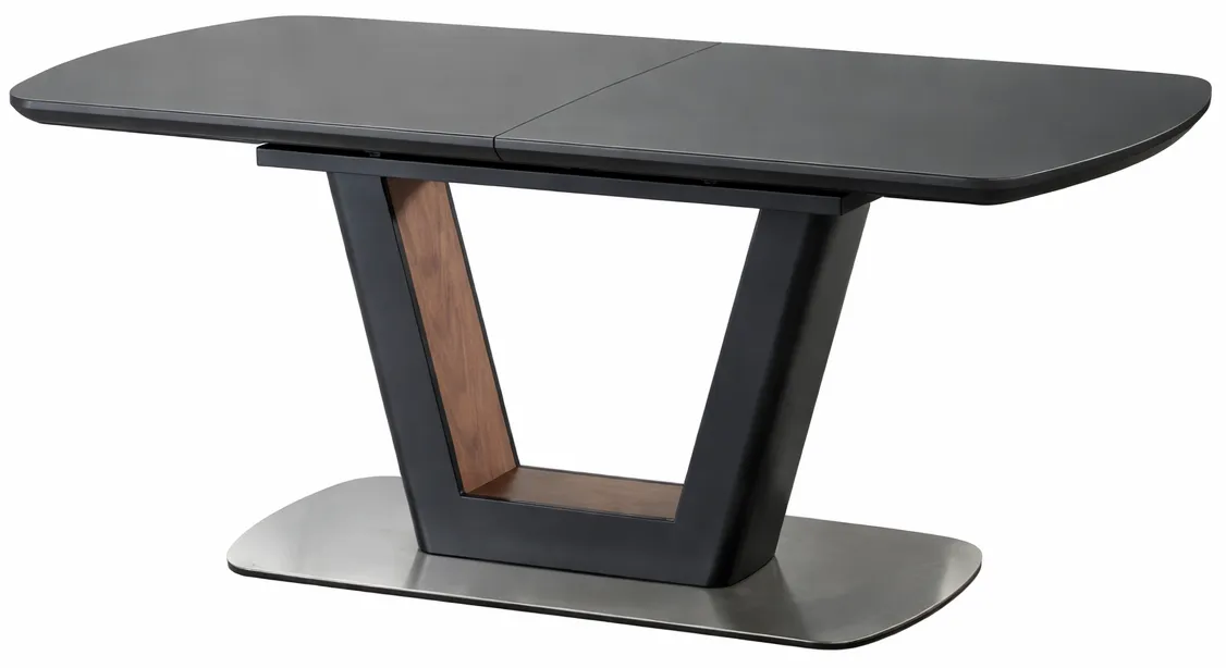 Rewelacyjnie i jakże profesjonalnie zaprojektowany stół Ilmila z najnowszej kolekcji Edinos Premium.pl zachwyca gustowną, pełną pomysłowości a zarazem ponadczasowej klasy formą. Ten designerski projekt meblowy wpisujący się w najnowsze aranżacyjne trendy może spokojnie zdobić zarówno wyrafinowanie zaprojektowane mieszkanie, jak i komercyjne przestrzenie o loftowej czy kolonialnej stylistyce. Nic w tym dziwnego - jakże wygodny w użytkowaniu i przepięknie wykonany stół Ilmila należy do totalnych unikatów pod względem wizualnym. Prostokątny, gładki i matowy blat w nietypowym, antracytowym matowym wydaniu został tu dopełniony stalową podstawą w antracytowo - orzechowym kolorze. Dzięki takiemu kolorystycznemu zestawieniu Ilmila cechuje elegancja i nowoczesny szyk. Właśnie tego typu projekty meblowe cieszą się obecnie ogromną popularnością wśród dekoratorów wnętrz. Minimalistyczna elegancja, piękno tkwiące w prostocie formy a do tego subtelna nonszalancja wynikająca ze starannie dobranych barw… No właśnie, to wszystko sprawia, że pełen modernizmu i nowoczesnej nonszalancji stół Ilmila zachwyca wciąż na nowo.