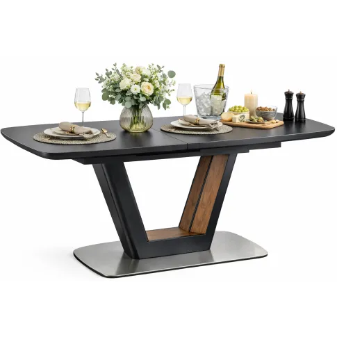 Jedyny w swoim rodzaju, jakże nietypowo prezentujący się i pełen designerskiej klasy stół Ilmila to propozycja, który zachwyca nie tylko pięknym stylem, lecz także starannością wykonania. Modny stół Ilmila to z cała pewnością unikat pod względem kolorytsycznym. Stół został wykonany w ciekawym kolorze antracyt. Dodano do niego szlachetne elementy w kolorze orzech. Całość to zatem szykowny, ale i zaskakujące stylistyczne projekt. Tak dostojna, a zarazem modernistyczna propozycja może zdobić różnorodnie zaprojektowane wnętrza domowe i komercyjne.