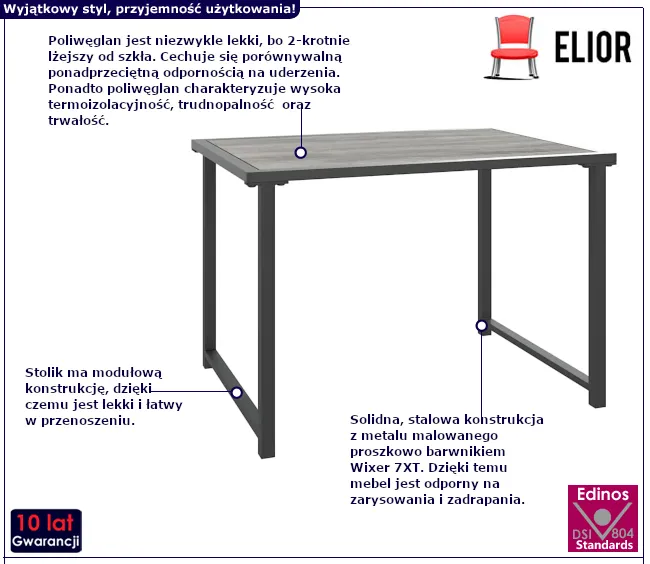 • Solidny blat z poliwęglanu.