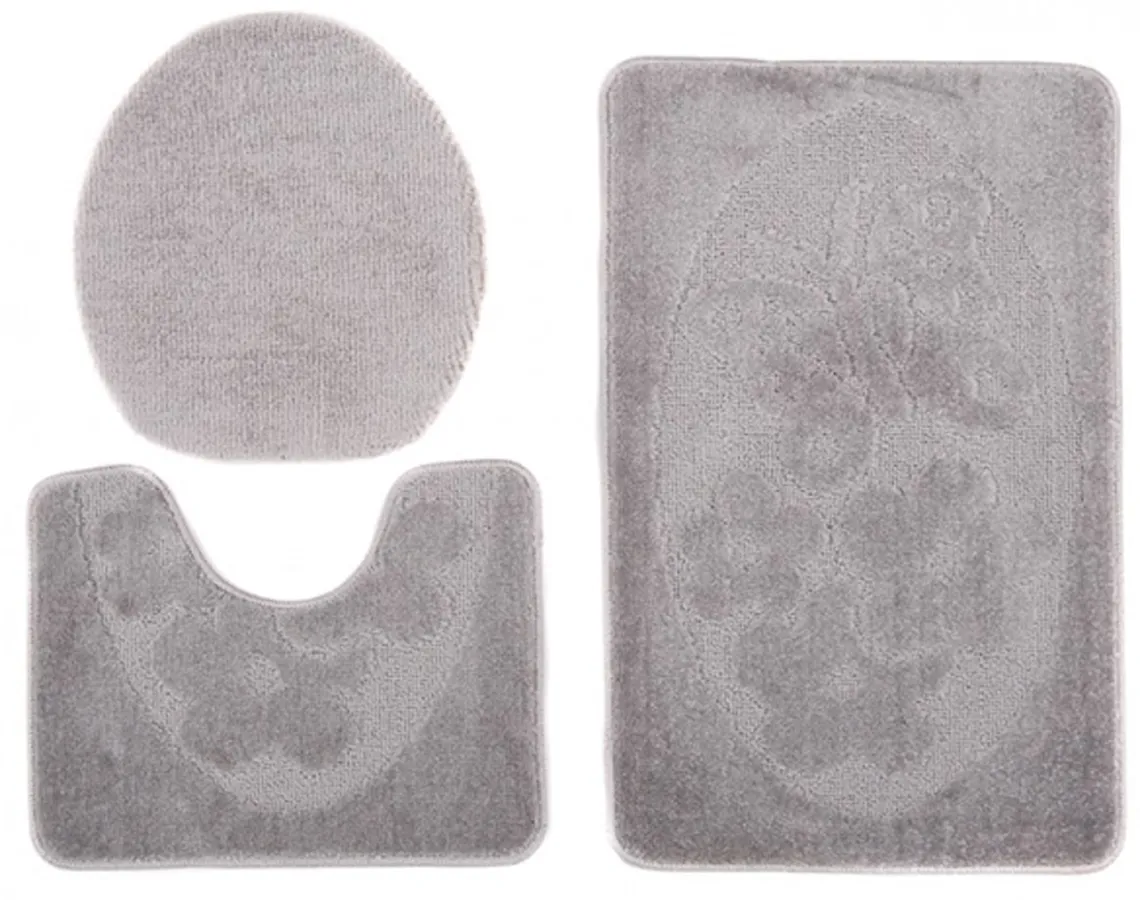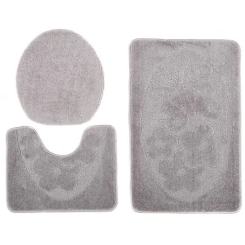 Antypoślizgowy popielaty zestaw chodniczków łazienkowych - Mago 3X